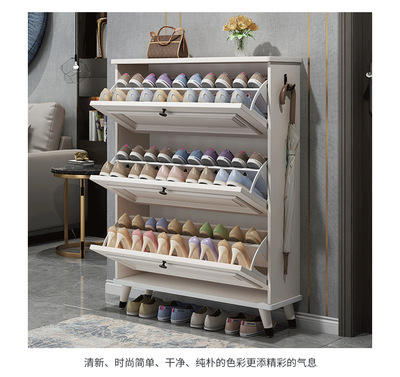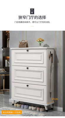 American-style ultra-thin shoe cabinet for home use, with a tipping mechanism at the entrance—light luxury design, 2024 new model, featuring embossed detailing, perfect for your entryway.