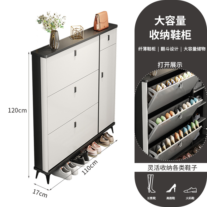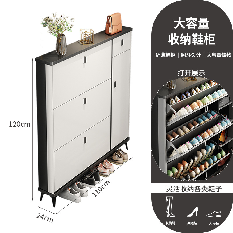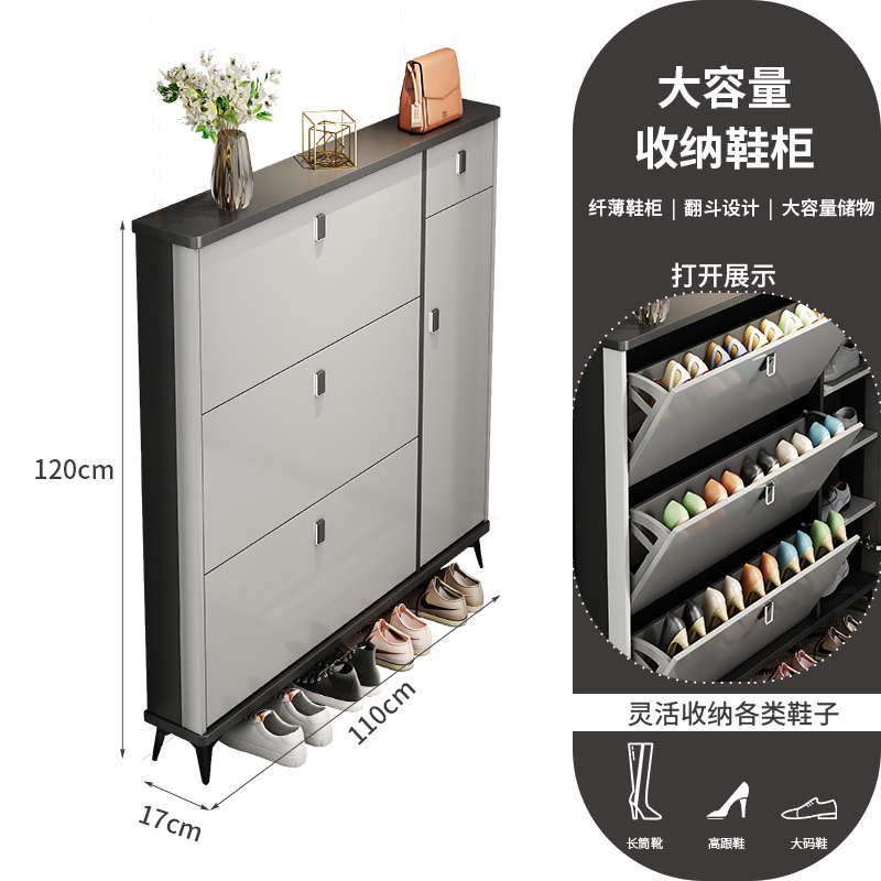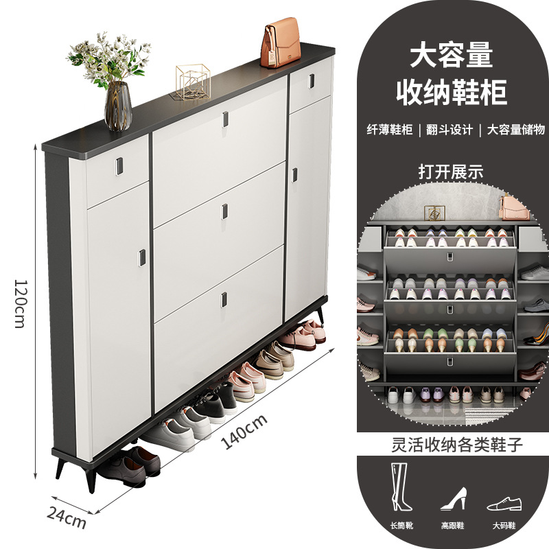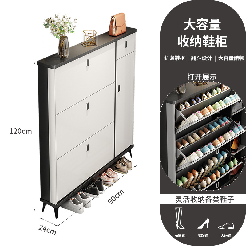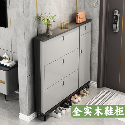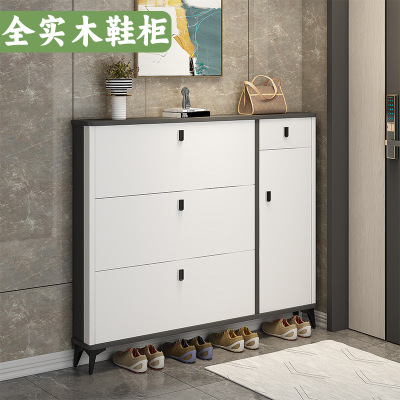 Full solid wood ultra-thin tilting shoe cabinet for home, entryway, Italian-style large capacity storage cabinet, simple entryway shoe rack