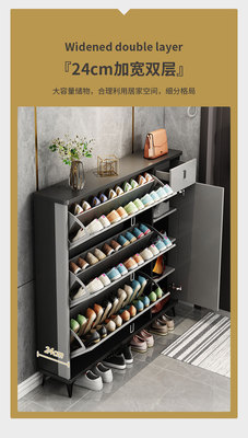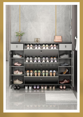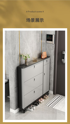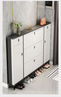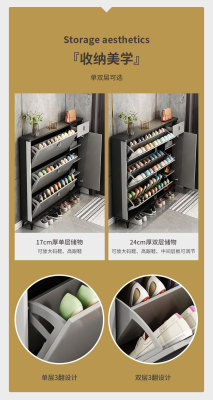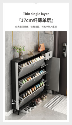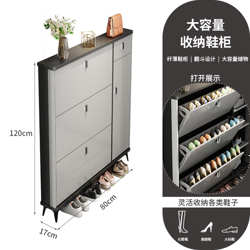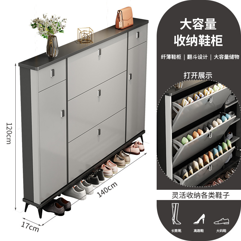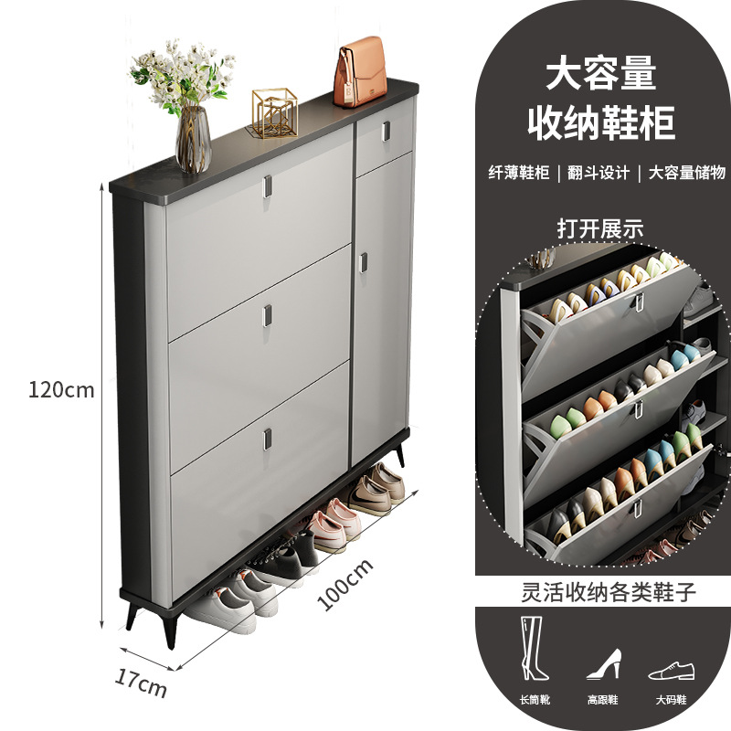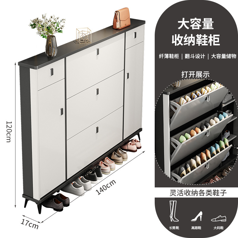 Full solid wood ultra-thin tilting shoe cabinet for home, entryway, Italian-style large capacity storage cabinet, simple entryway shoe rack