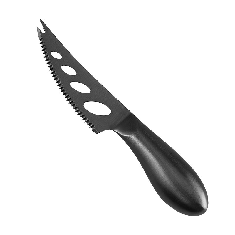 Cheese knife with black stainless steel hollow handle, suitable for cheese, bread, cream, butter, and dining.