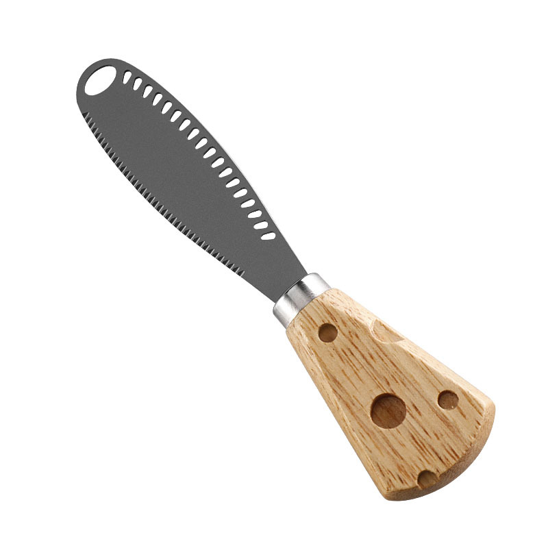 跨境橡膠木奶酪柄芝士刀黃油刮刀帶孔牛油奶酪刀奶油果醬抺刀