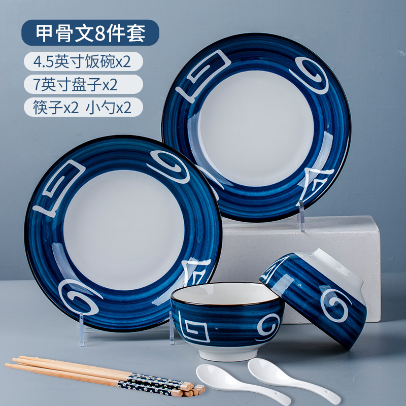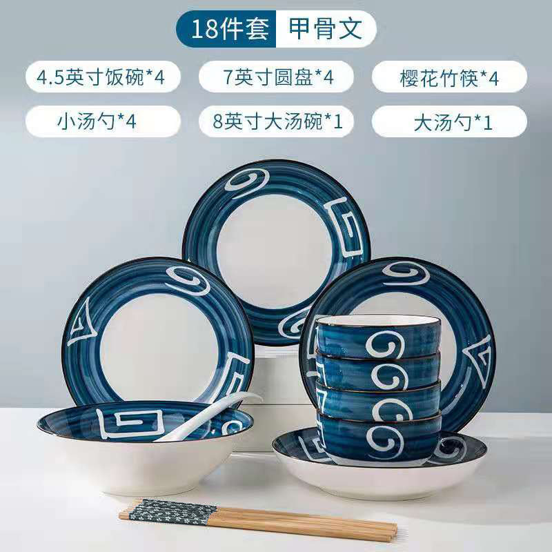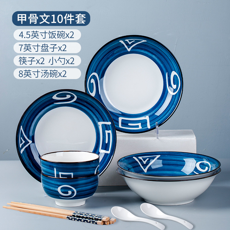 Oracle bone script 10 heads, 2 bowls, 2 plates, 2 spoons, 2 chopsticks, plus 2 soup bowls