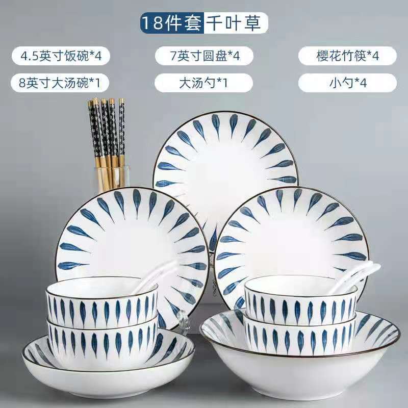 18 leaves of千叶草, paired with 1 soup bowl and 1 large spoon