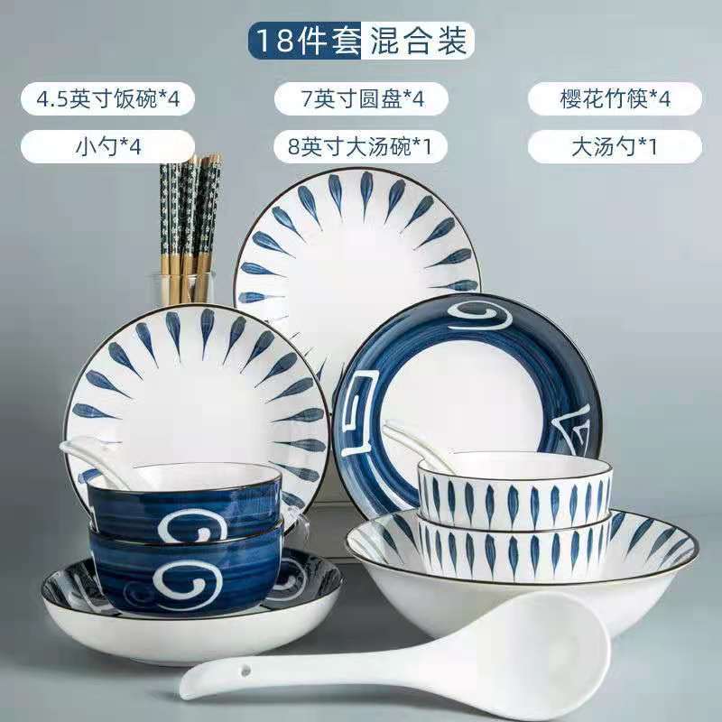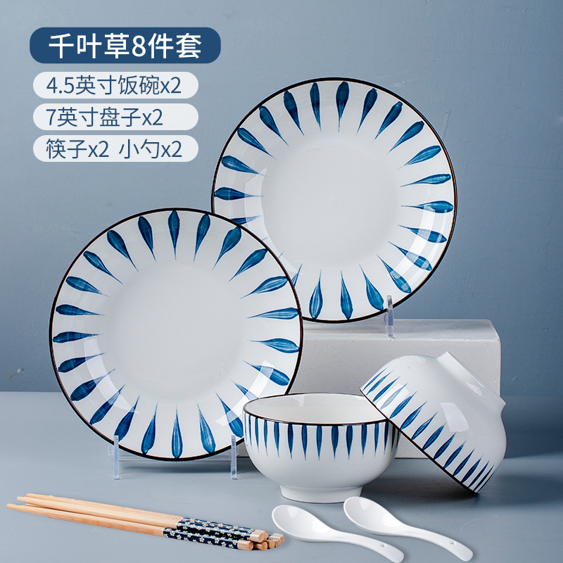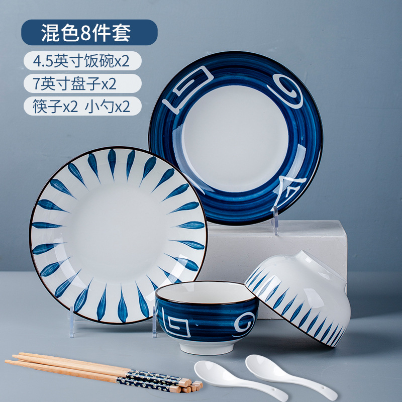 Ceramic bowl set for home use, minimalist creative personal INS style, trendy Japanese tableware, underglaze painting, direct factory sale