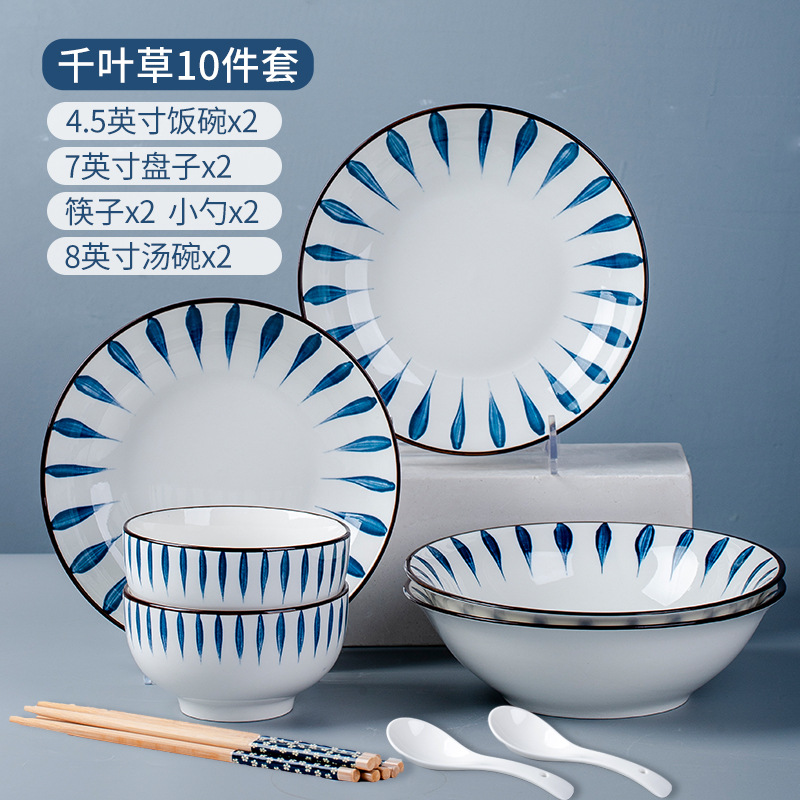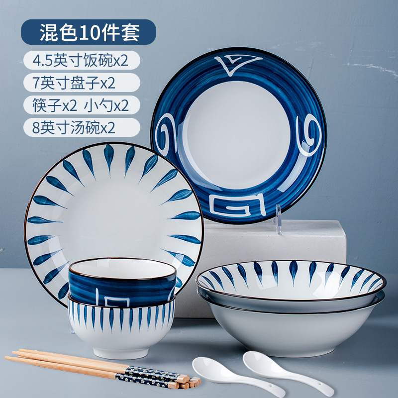 Mixed 10 heads, 2 bowls, 2 plates, 2 spoons, 2 chopsticks, plus 2 soup bowls