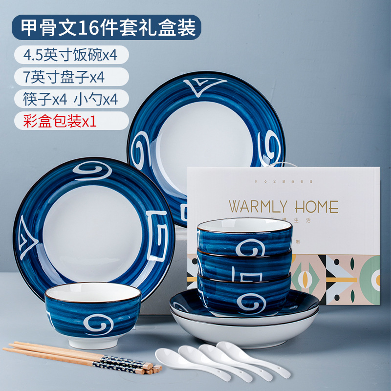 Oracle bone script 16 heads, 4 bowls, 4 plates, 4 spoons, 4 chopsticks