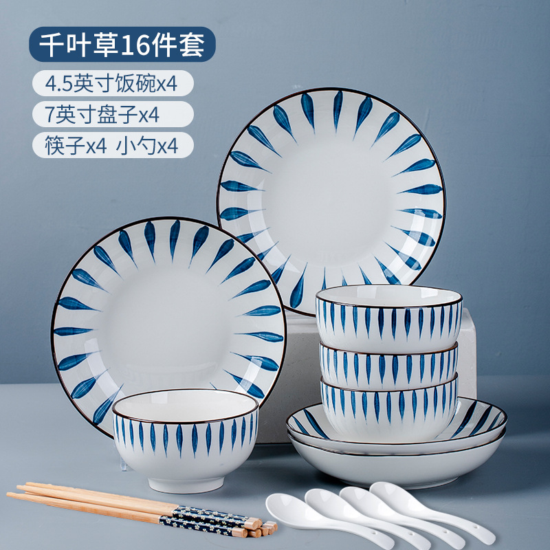 Mixed-color 16 heads, 4 bowls, 4 plates, 4 spoons, 4 chopsticks