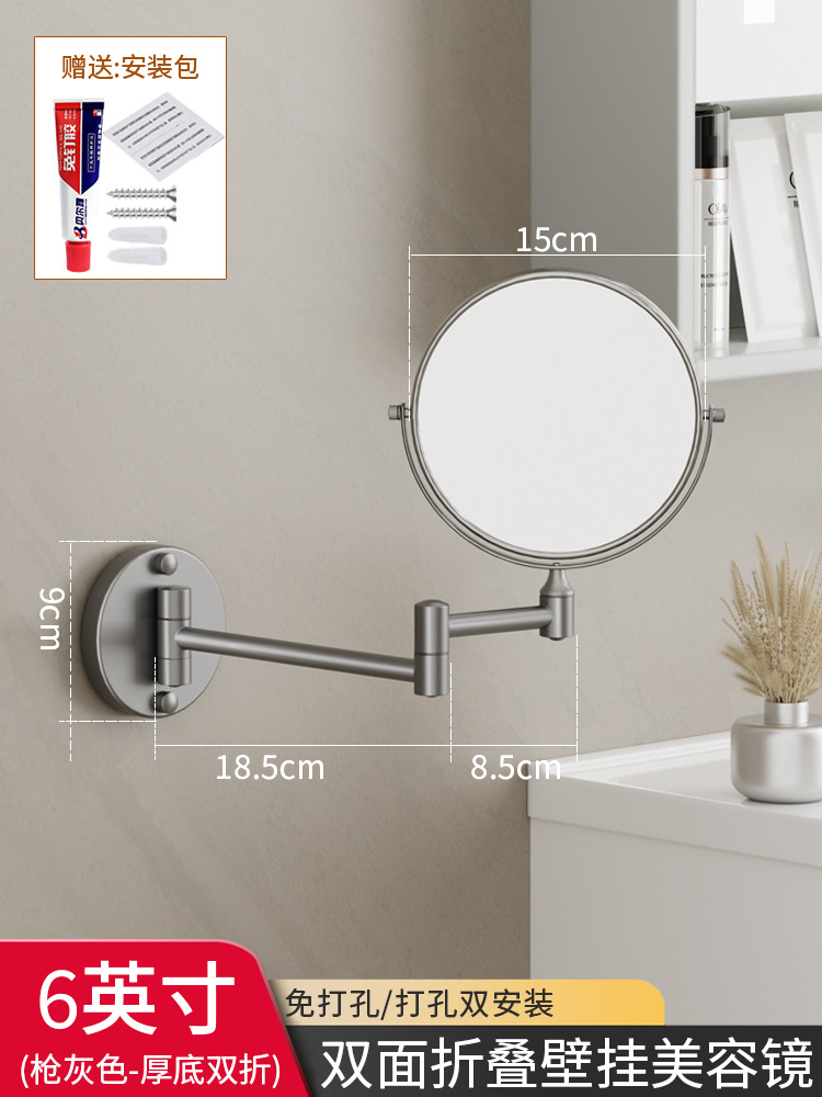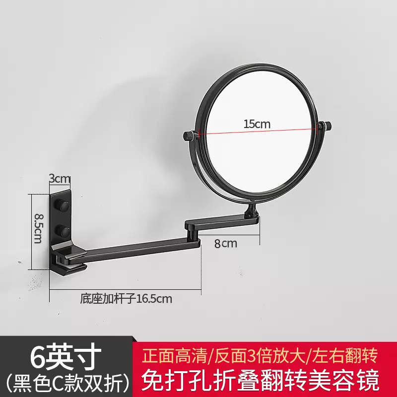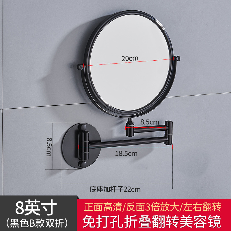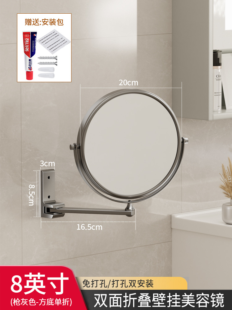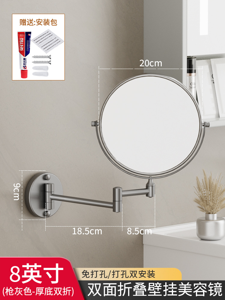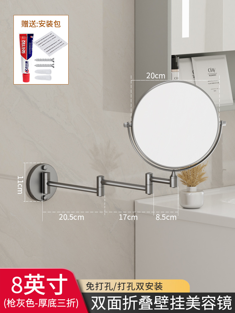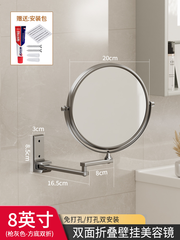 Reusable mirror without punching holes, retractable, foldable, rotating double-sided bathroom wall-mounted magnifying beauty mirror for hotels
