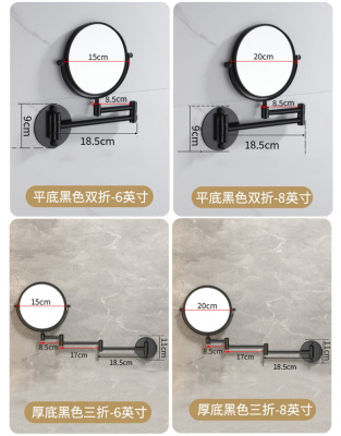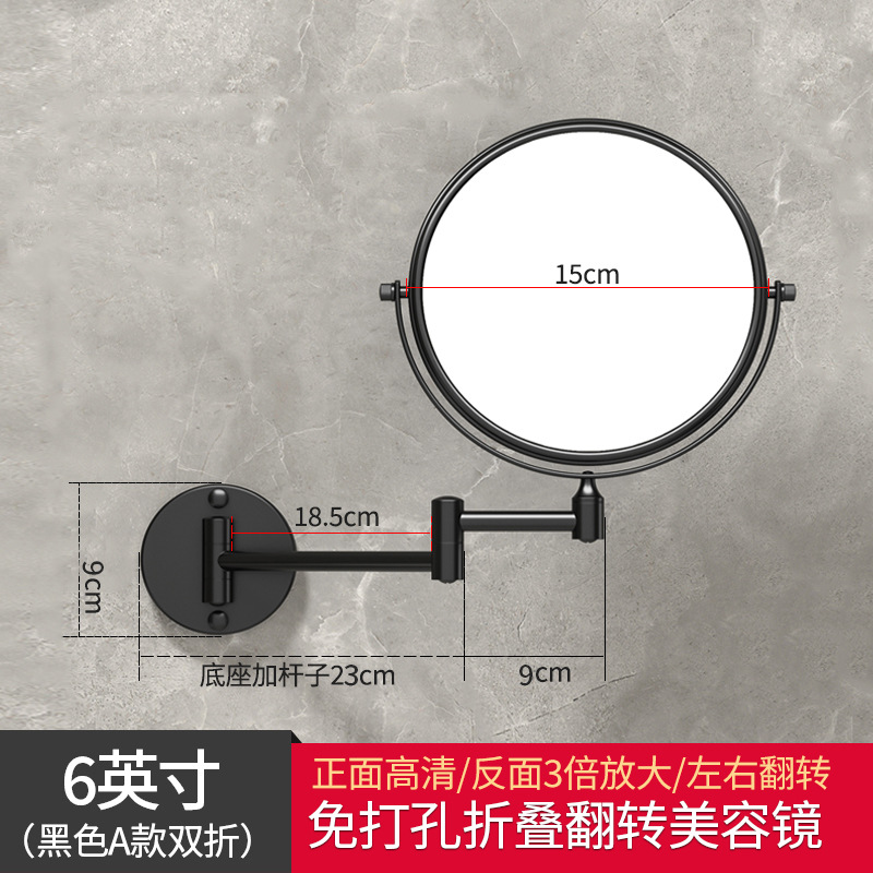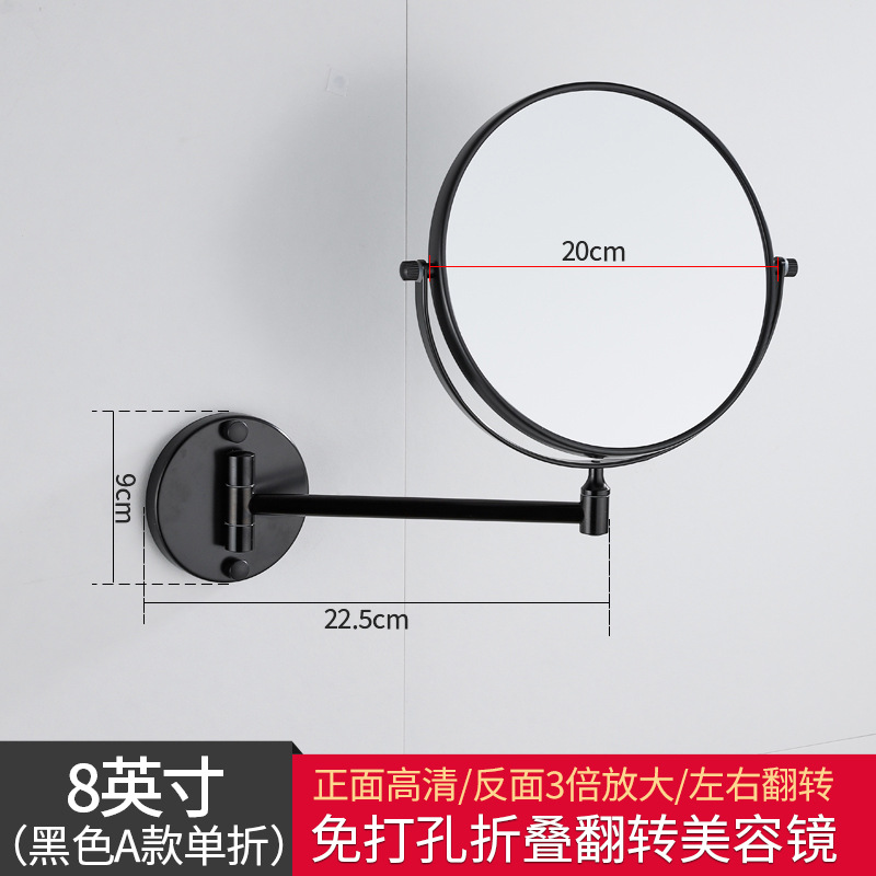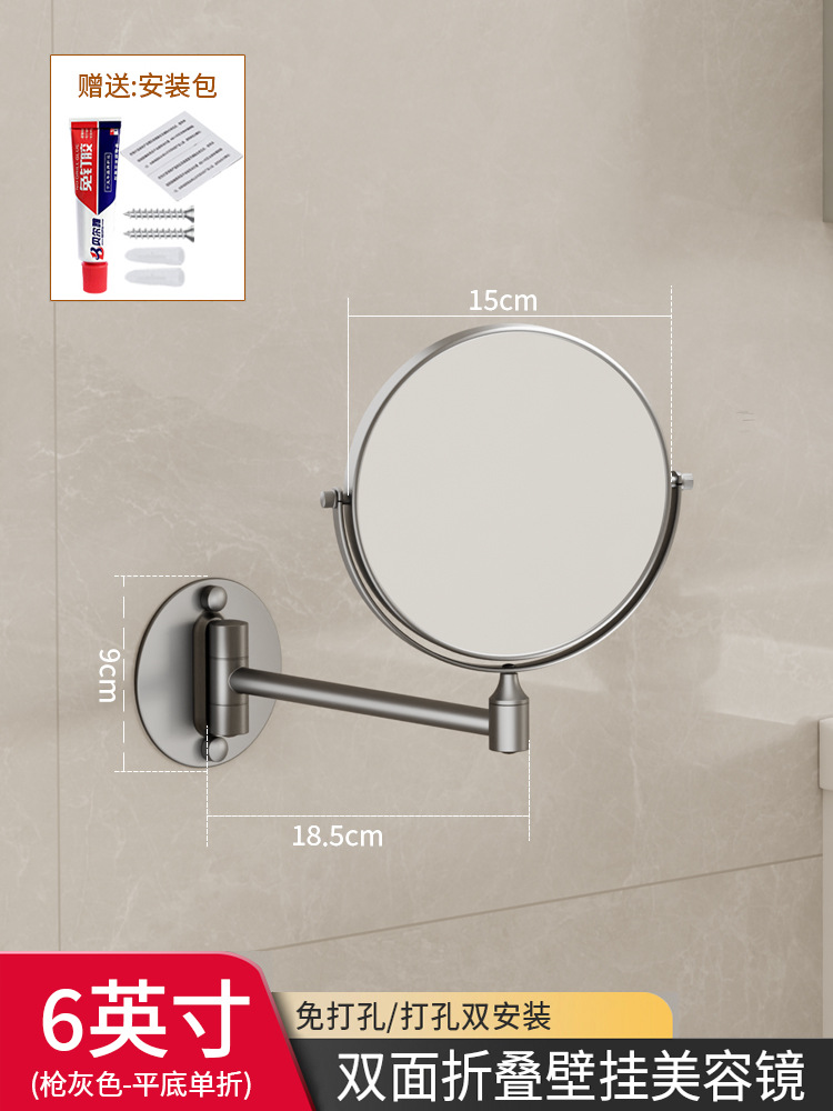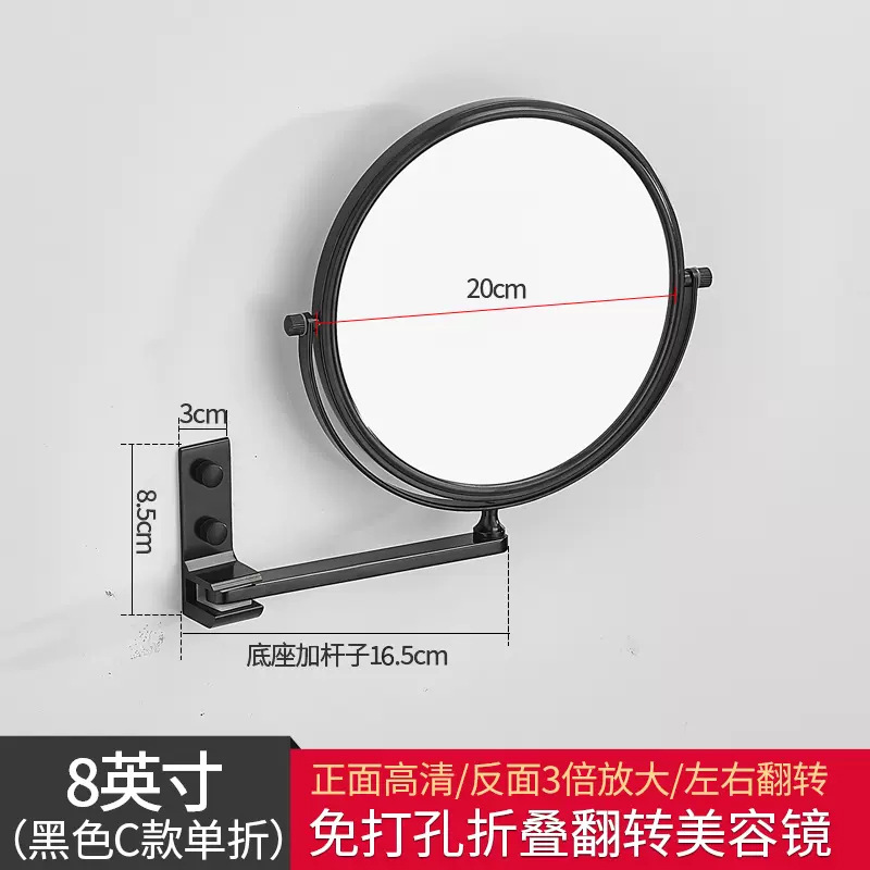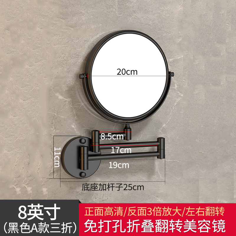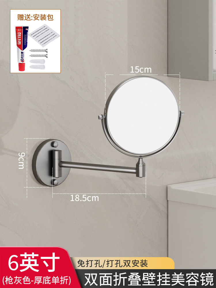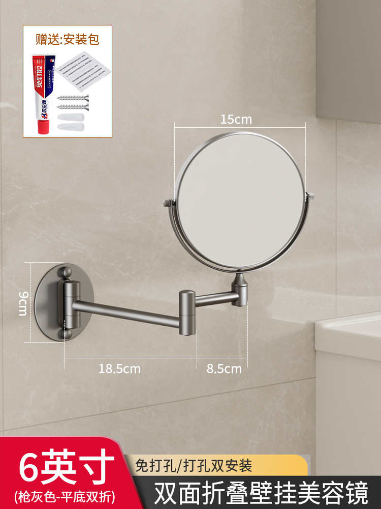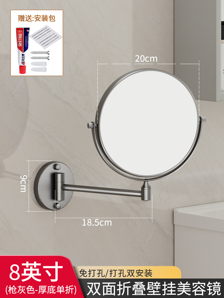 Reusable mirror without punching holes, retractable, foldable, rotating double-sided bathroom wall-mounted magnifying beauty mirror for hotels