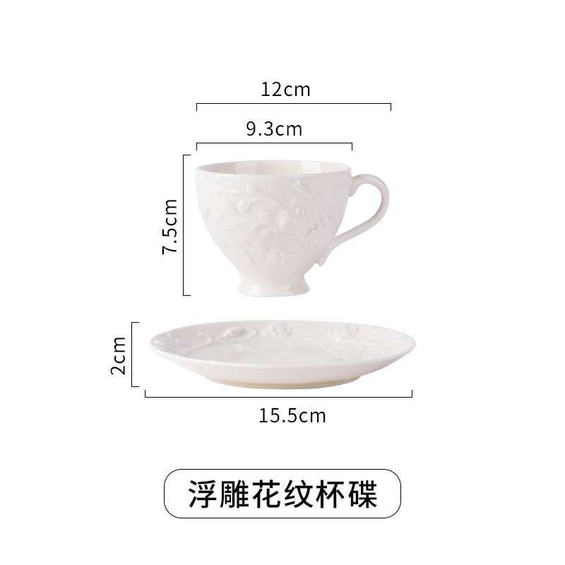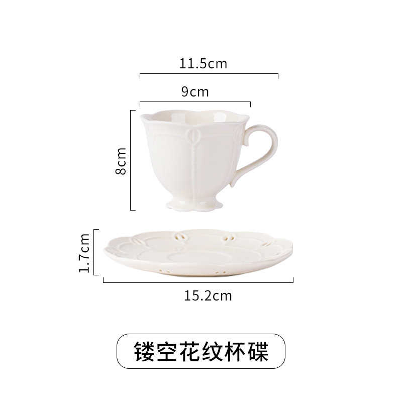 Vintage ceramic cup and saucer set with floral decoration, dessert plate, coffee cup and saucer, lace cup, afternoon tea cup, home water cup, European style
