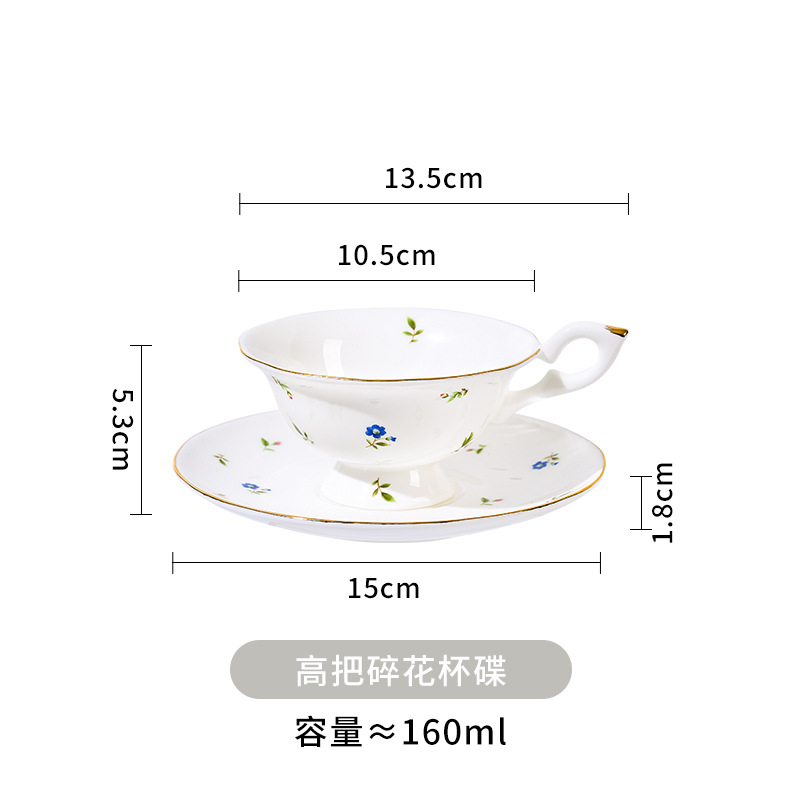 高把碎花杯碟
