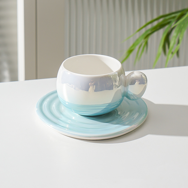 Coffee cup and saucer set with high-end ceramic, elegant design, luxury feel, high-quality Nordic creative personalized gradient color, gift for women