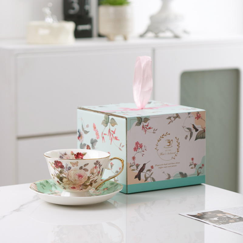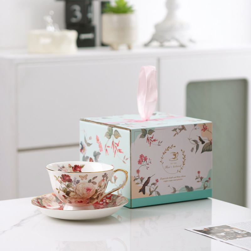 英式山茶花陶瓷咖啡杯家用小奢華下午茶杯碟女生禮物高顏值杯子