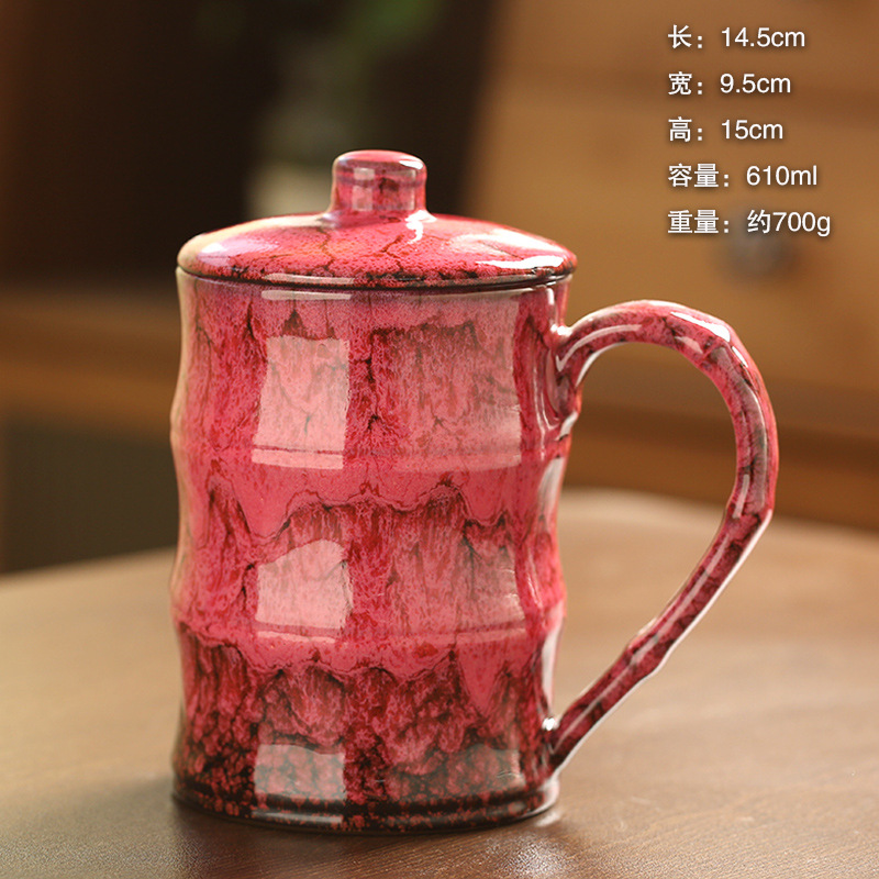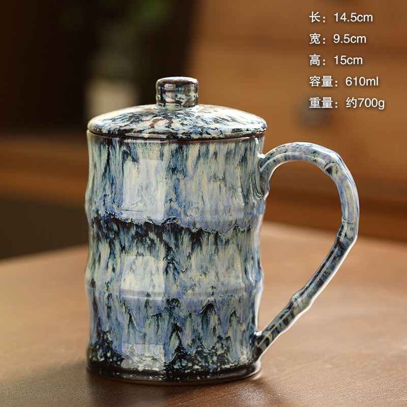 跨境熱賣窯變釉竹節杯大容量陶瓷馬克杯創意咖啡個人水杯小額批發