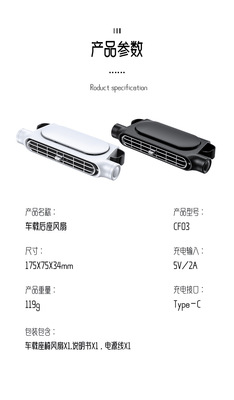 2024 Creative New Product Car Seat USB Plug-in Bladeless Backrest Cooling Rear Seat Fan Automotive Cross-border
