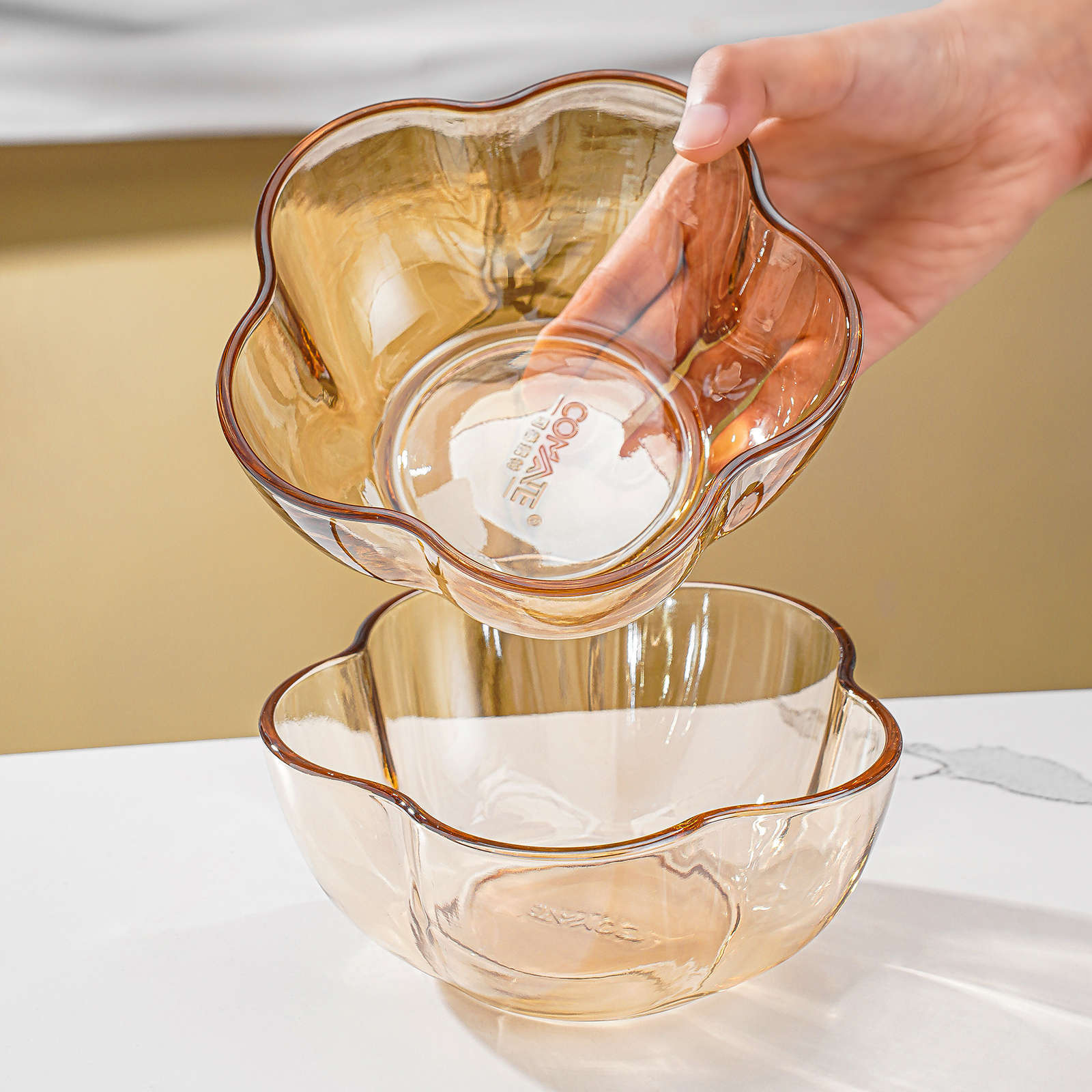 Household High-Quality Amber Plum Blossom Glass Bowl Personalized Salad Bowl Dining Bowl Living Room Decor Dessert Fruit Plate Transparent Bowl