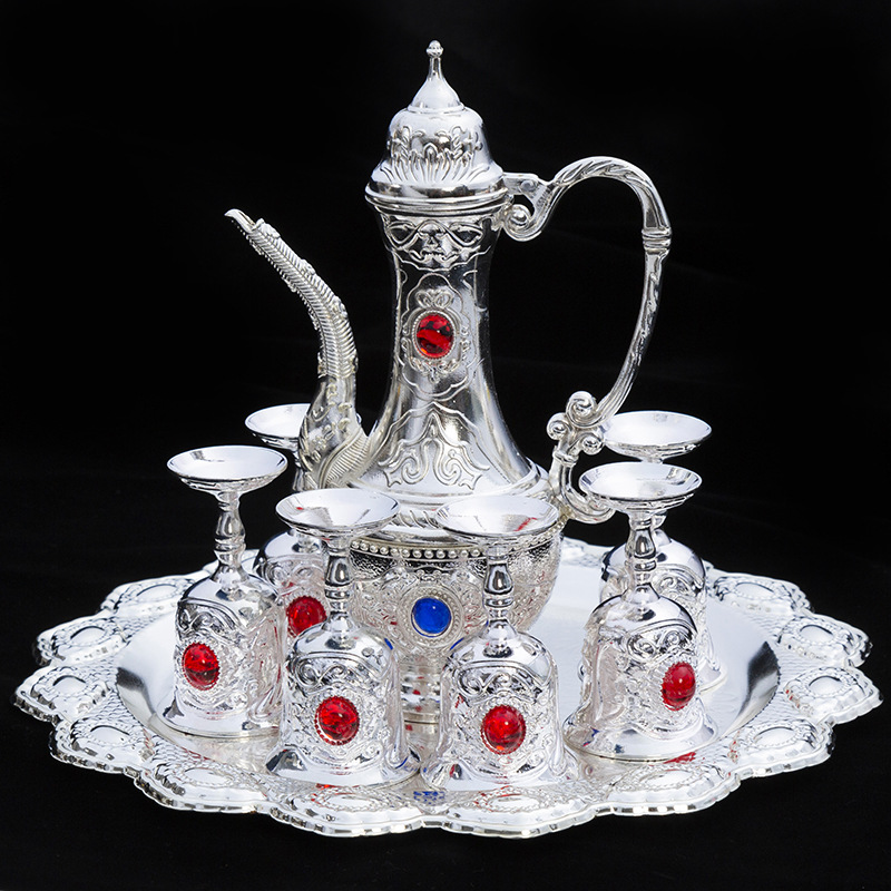 歐式高檔銀色酒杯酒具中式套裝復古茶壺茶具家居酒店送禮8件套裝