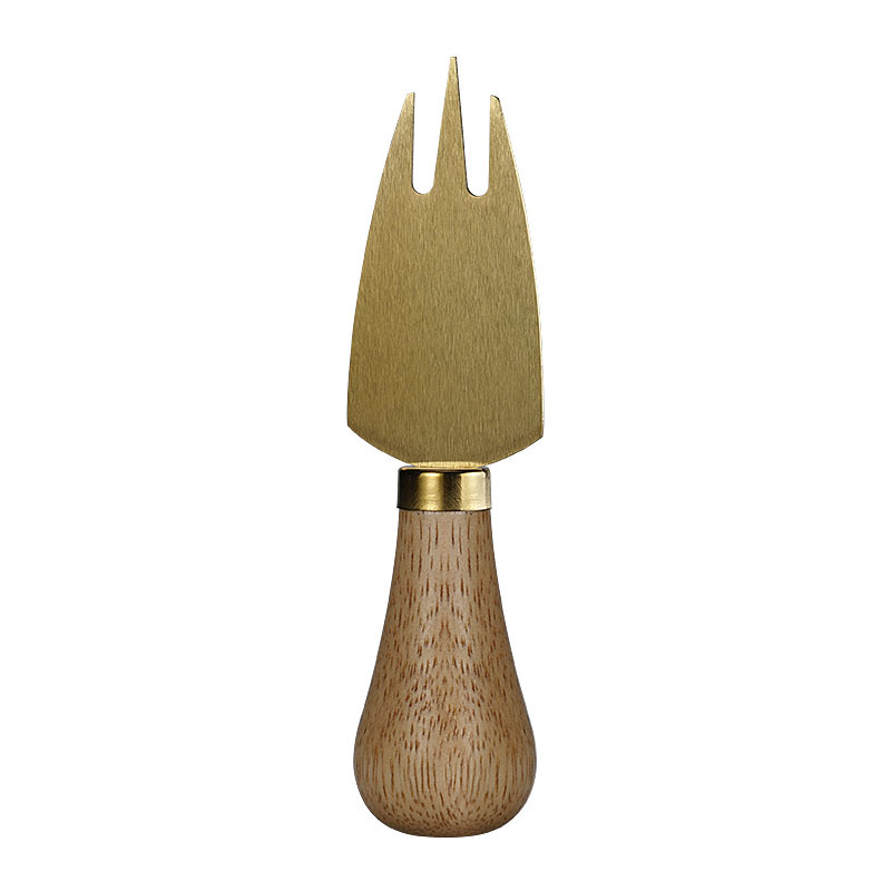 Factory Standing Stainless Steel Gold Cheese Knife, Cheese Slicer, Rubber Wood Handle Butter Knife, Bread Knife, Table Knife