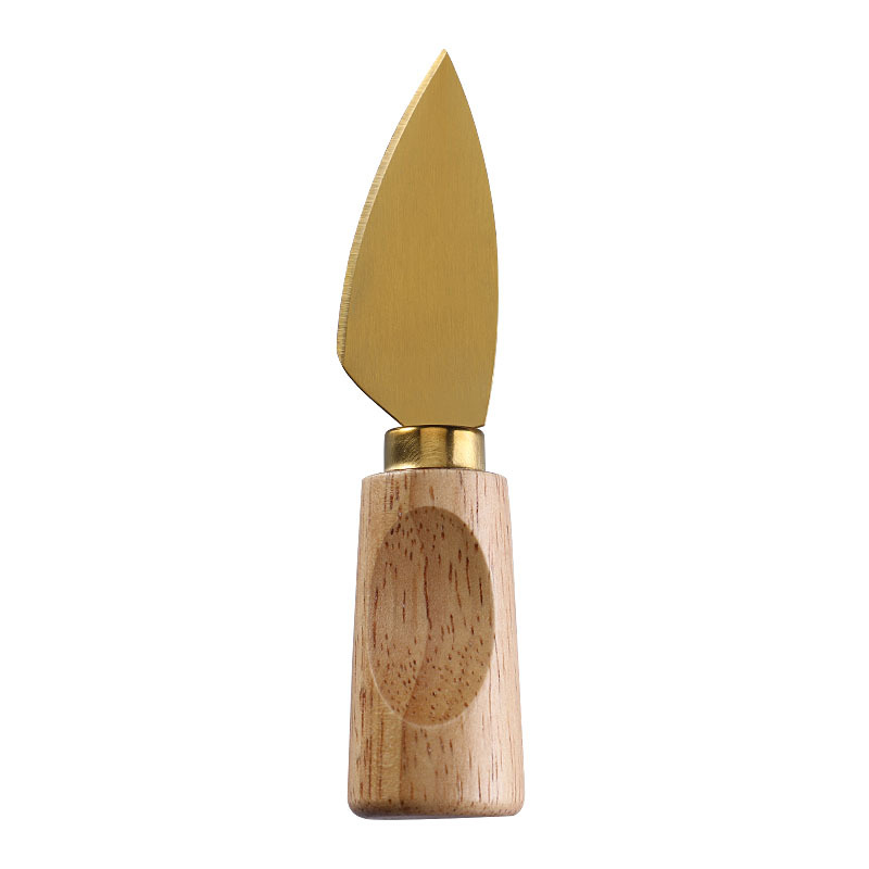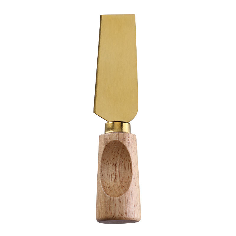 跨境橡膠木柄金色芝士刀不鏽鋼奶酪果醬刀奶油刀披薩刀西餐餐具