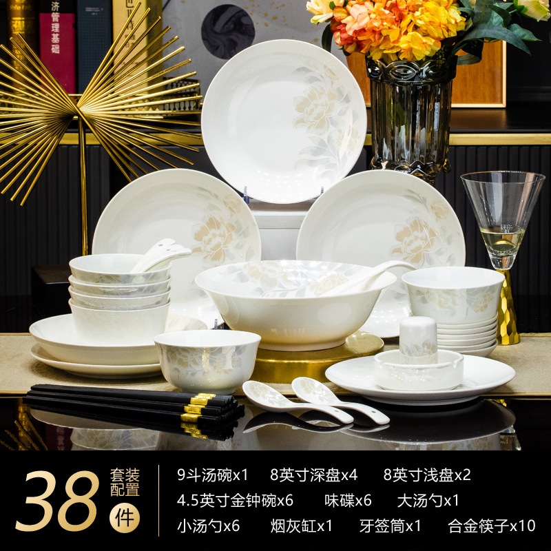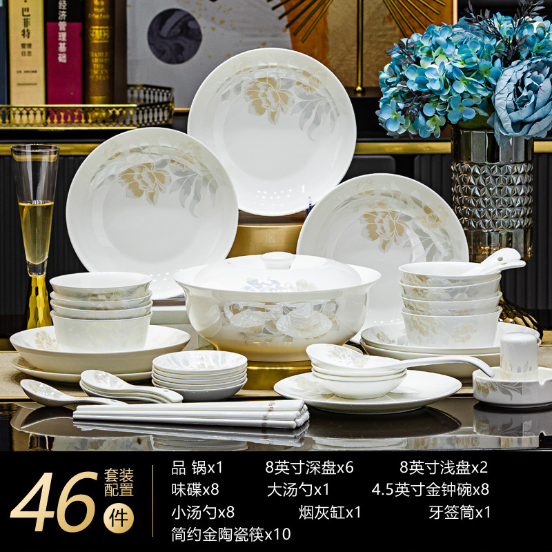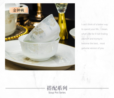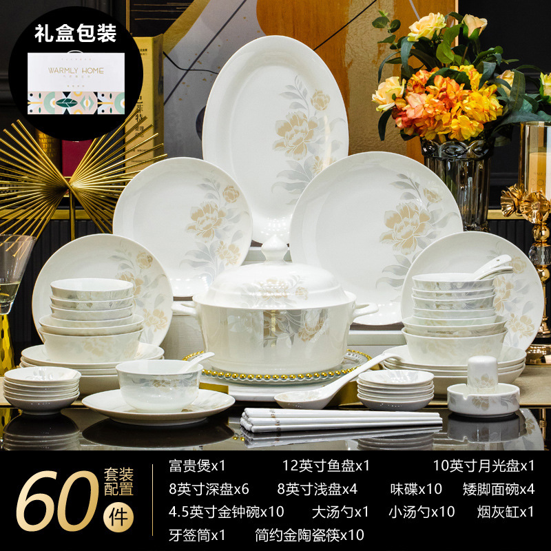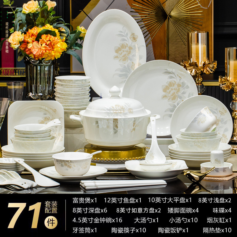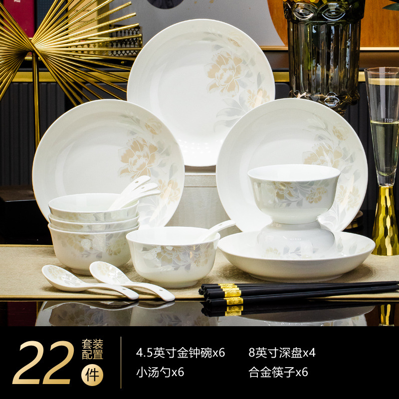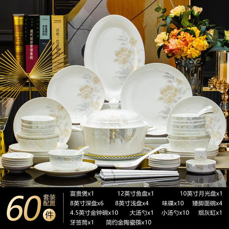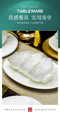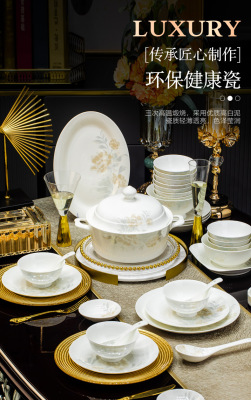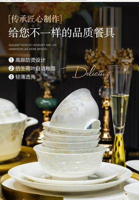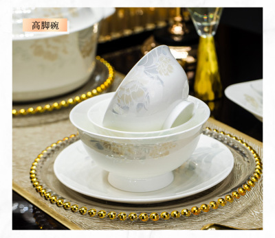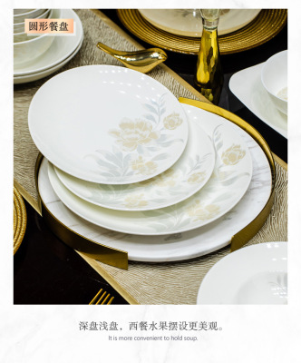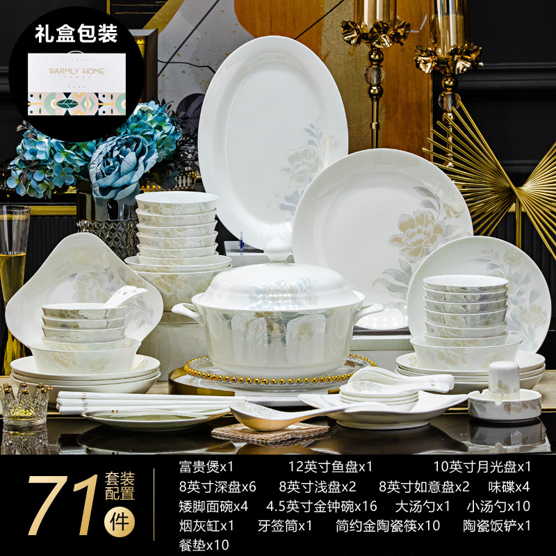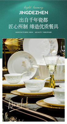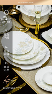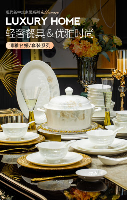 景德鎮高端骨瓷碗碟套裝家用陶瓷餐具清雅名媛碗盤子喬遷送禮代發