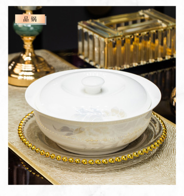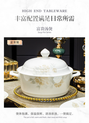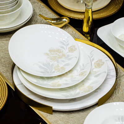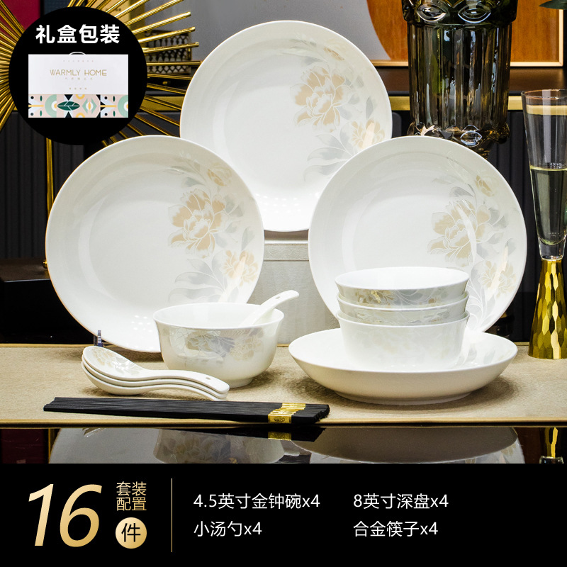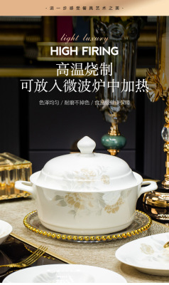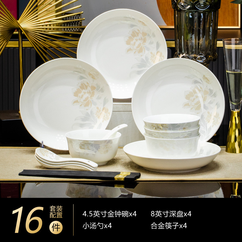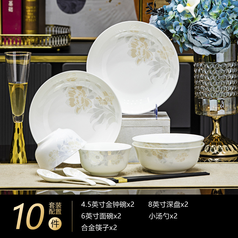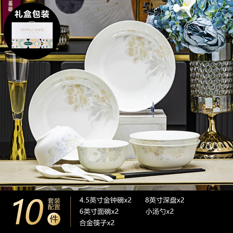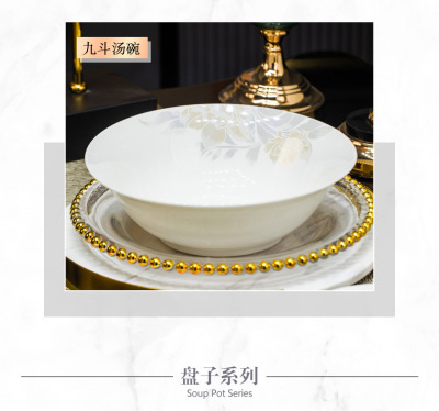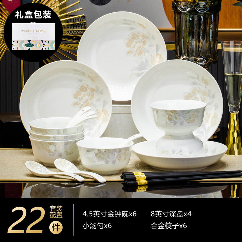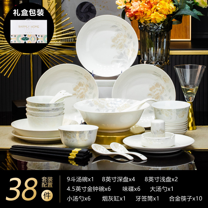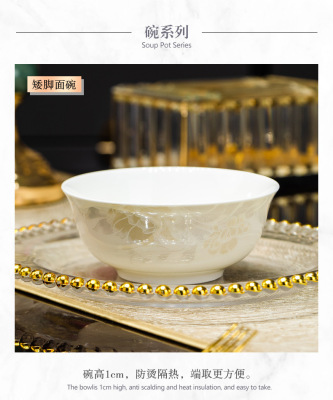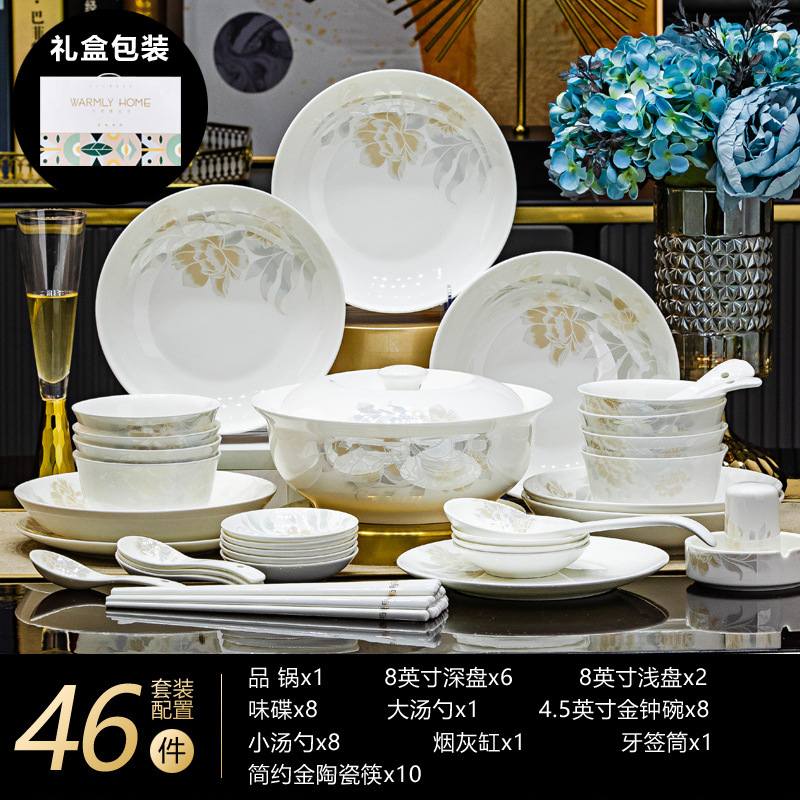 景德鎮高端骨瓷碗碟套裝家用陶瓷餐具清雅名媛碗盤子喬遷送禮代發