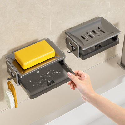 Hanging Soap Drainage Rack for Bathroom, Hole-Free Soap Dispenser, Wall-Mounted Home Bathroom High-End New Double Layer Storage Shelf