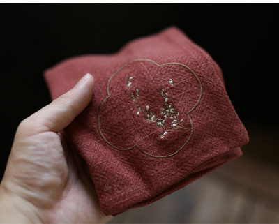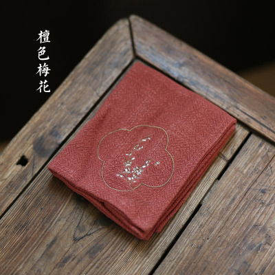 A5L Embroidered Fish and Crane Tea Fabric Linen Tea Towel, Water-absorbent Thick Cotton Linen Tea Ceremony Accessories Tea Table Towel
