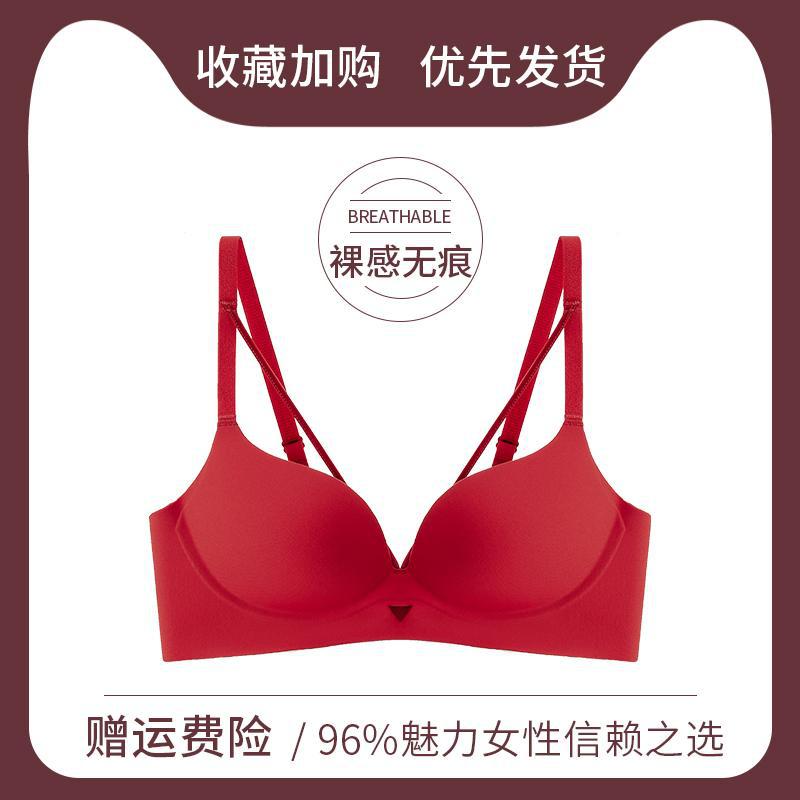 Red big-breasted, small-breasted, small-breasted, breast-retracting, anti-sagging, small-breasted, sexy, wedding, festive, adjustable, large-size bra