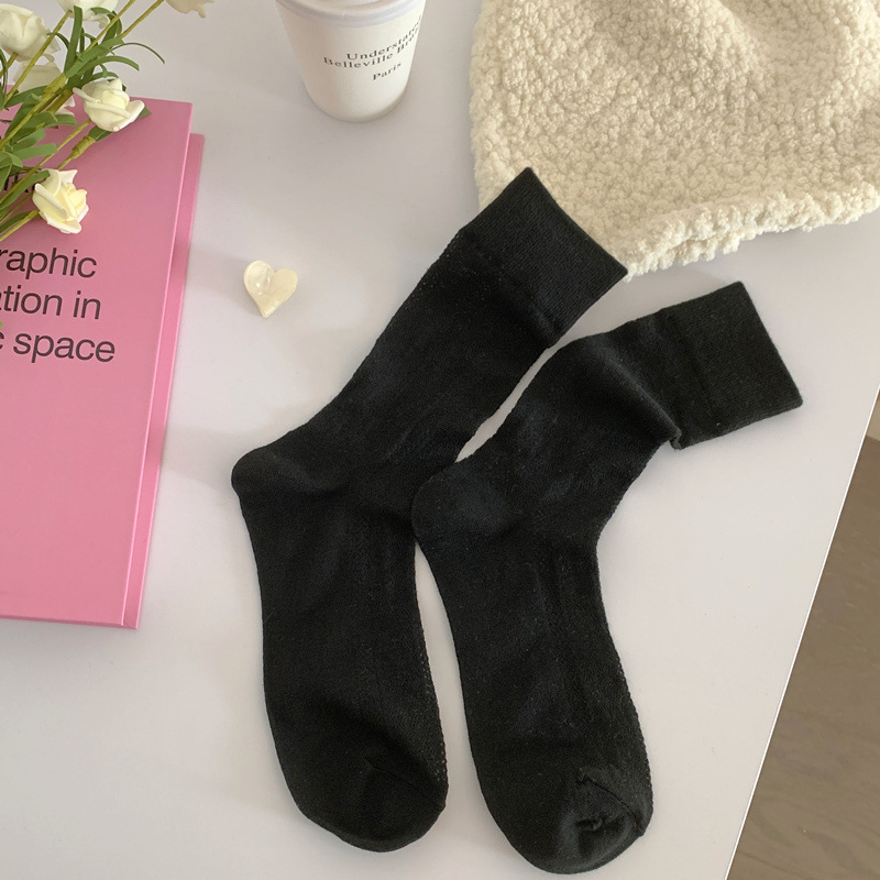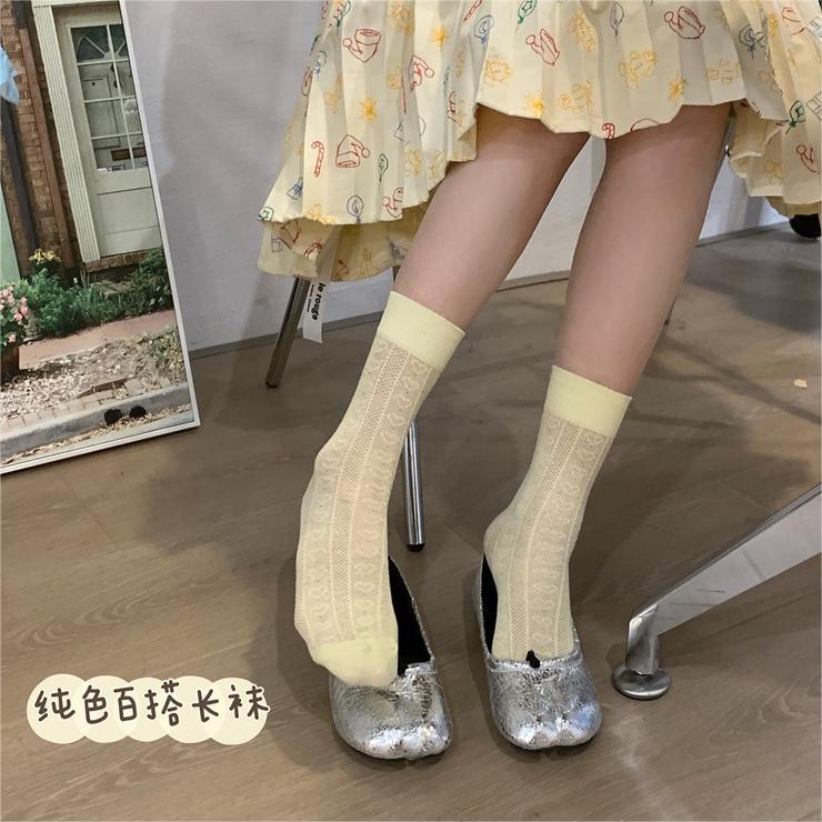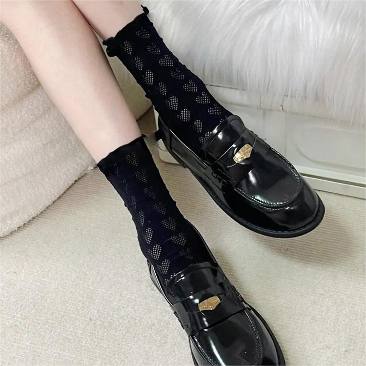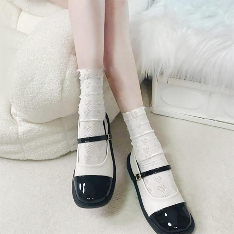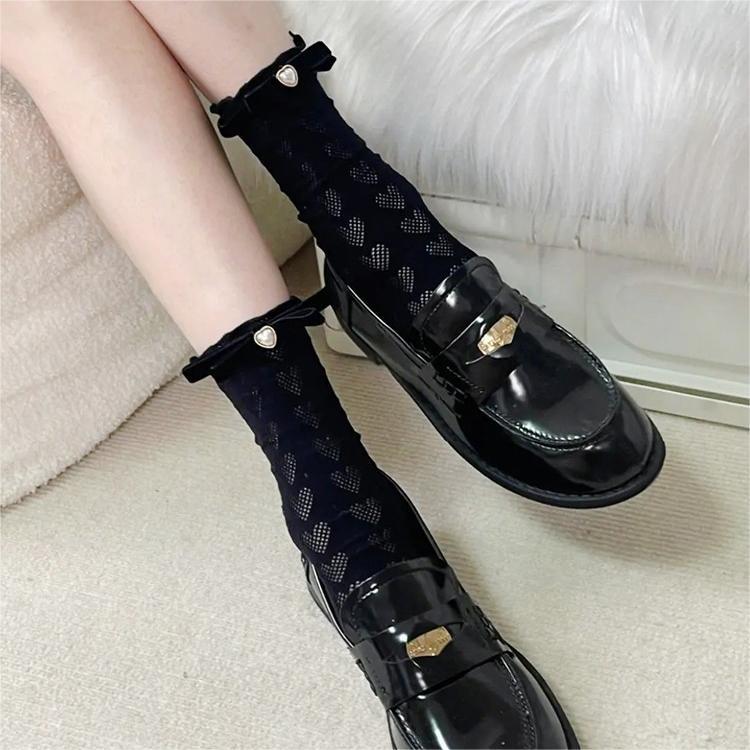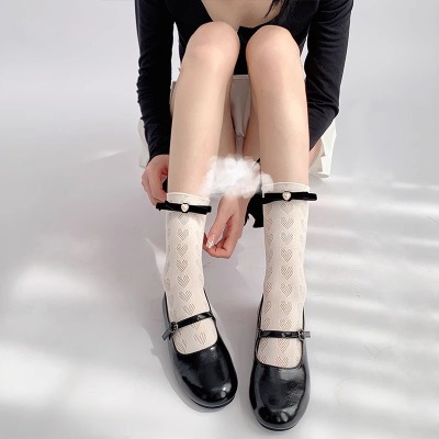 Bow tie pearl love white fungus socks jk summer thin short mid-calf socks for women with Mary Jane shoes