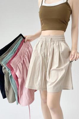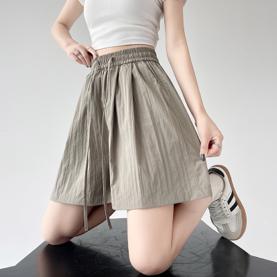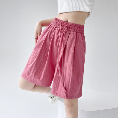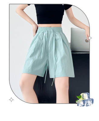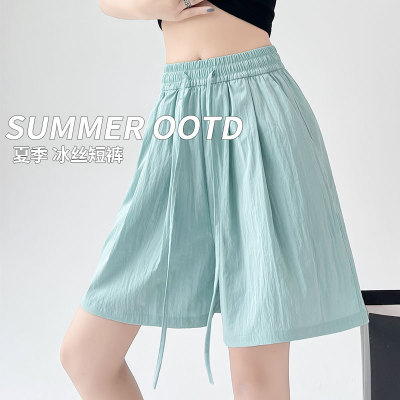 =Summer ice silk texture five-point shorts women's high-waisted thin loose straight pleated cool casual pants