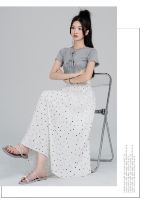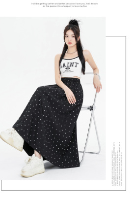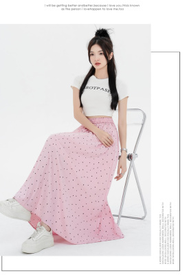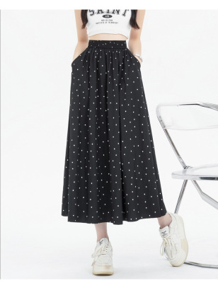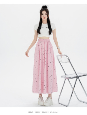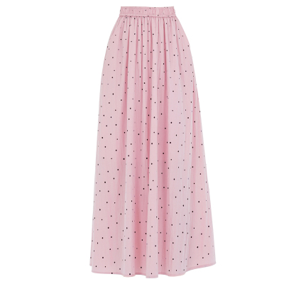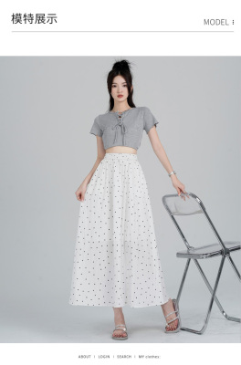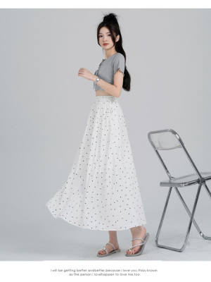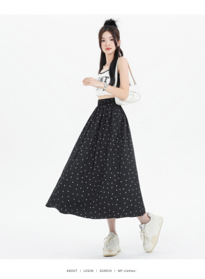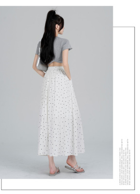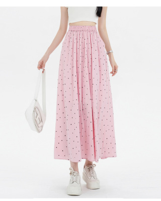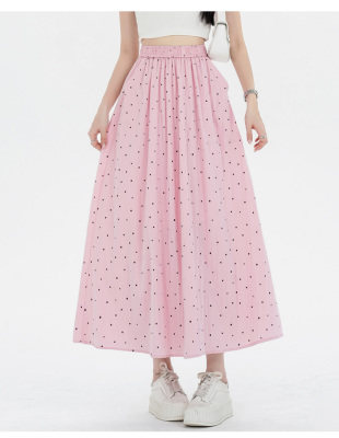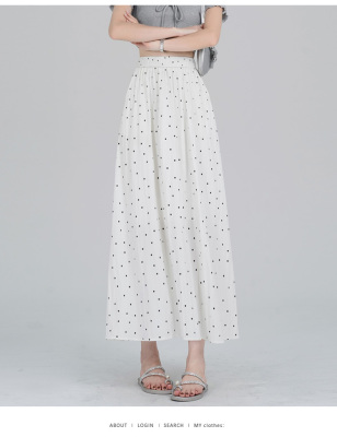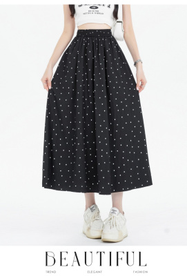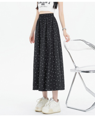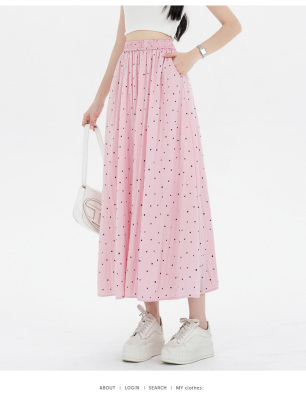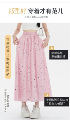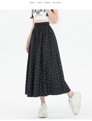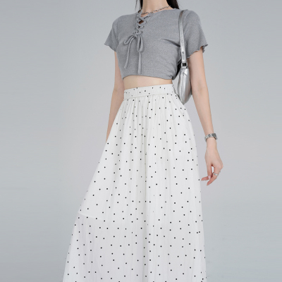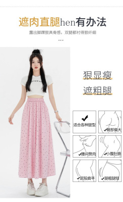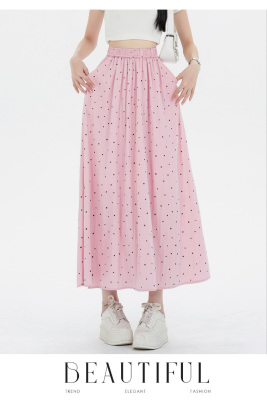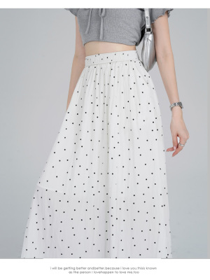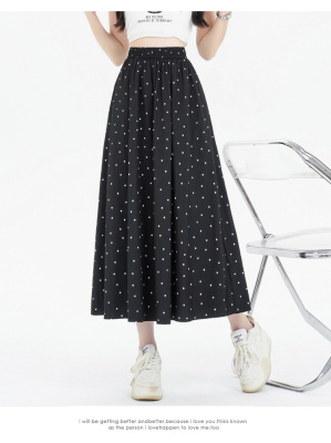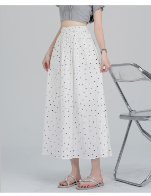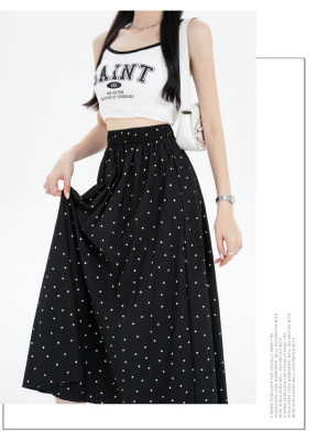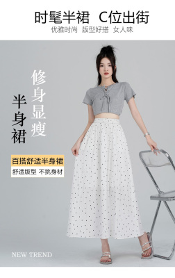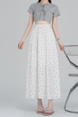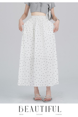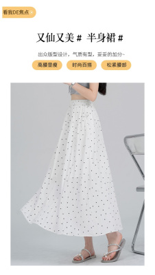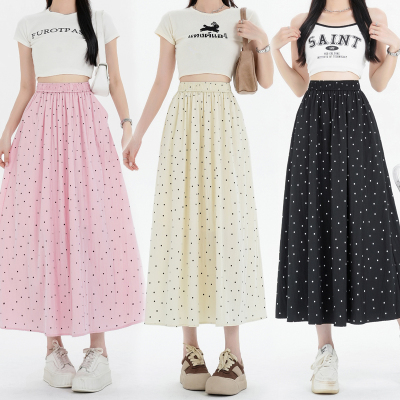 Polka Dot Skirt Women's Summer Ice Silk Cotton Linen Elastic Waist Covering Hip Drape A-Line Mid-Length Umbrella Skirt