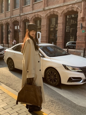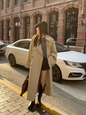 Celebrities Hall khaki trench coat women's 2024 new spring and autumn long British style high-end coat