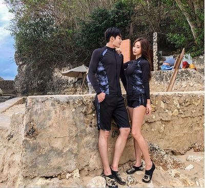 Korean couple's wetsuit, snorkeling mother's suit, split long-sleeved swimsuit, parent-child wear, conservative surfing foreign trade swimsuit