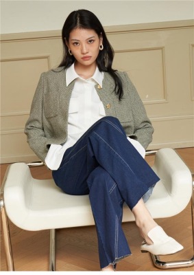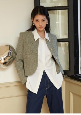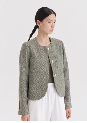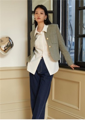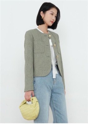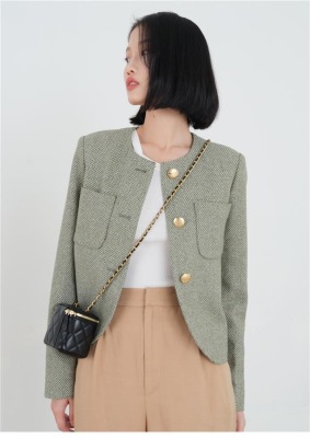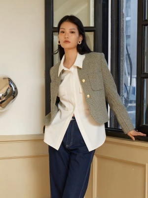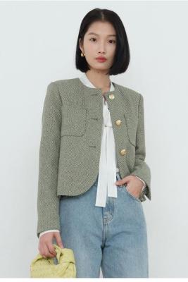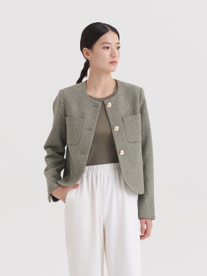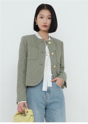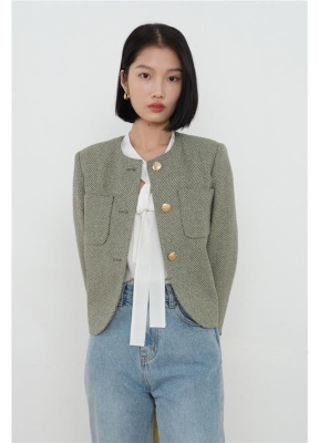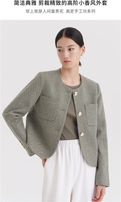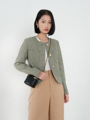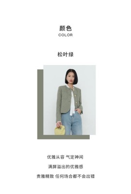 Green little fragrant coat French socialite 2024 spring and autumn new style short round neck design niche chic top