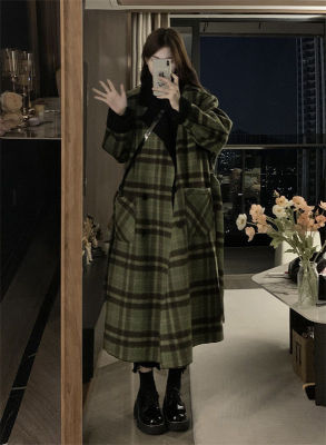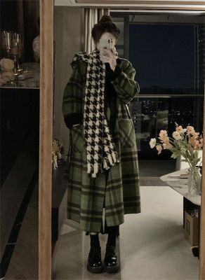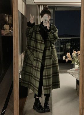 Retro plaid mid-length coat women's winter 2022 new thickened loose reversible long-sleeved woolen coat