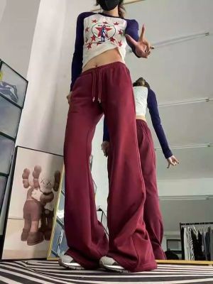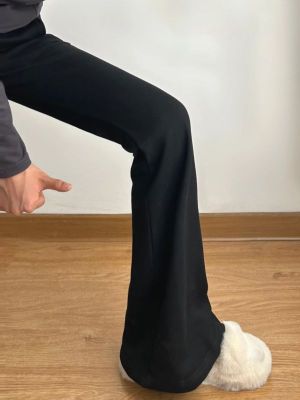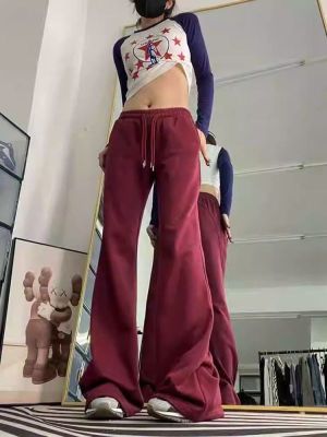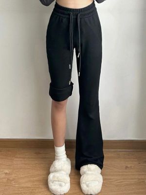 Cotton brushed plush American retro micro-flared pants for women