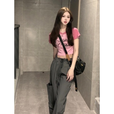 Plus size casual overalls for women summer new loose slimming straight pants fat mm high waist covering crotch wide leg pants