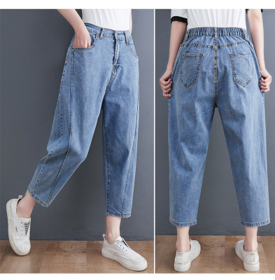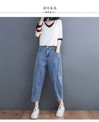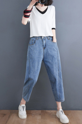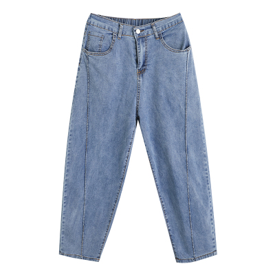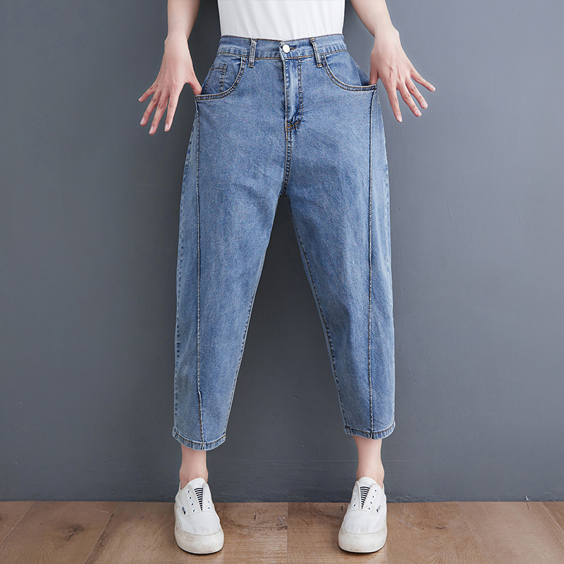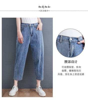Fat mm plus size versatile slimming stretch carrot pants semi-elastic thin denim harem pants