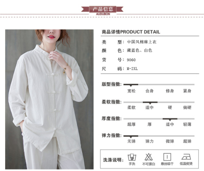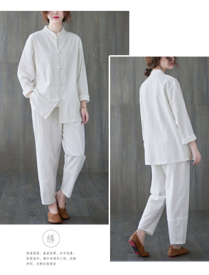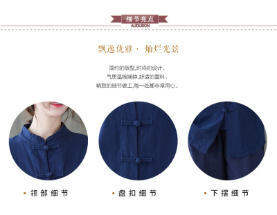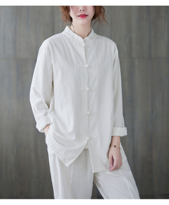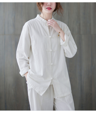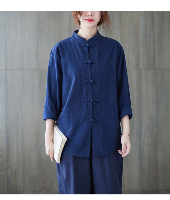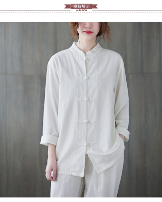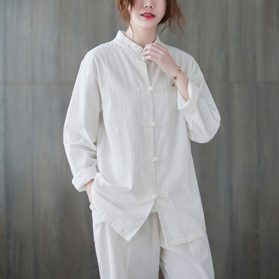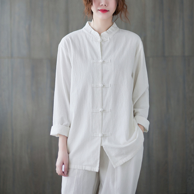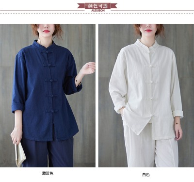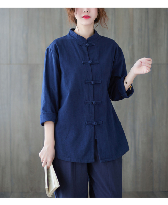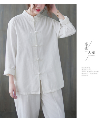 Cotton and linen Chinese style stand-up collar button-up top, autumn and spring Tai Chi suit for women, Zen suit, large size jacket, work suit, tea suit