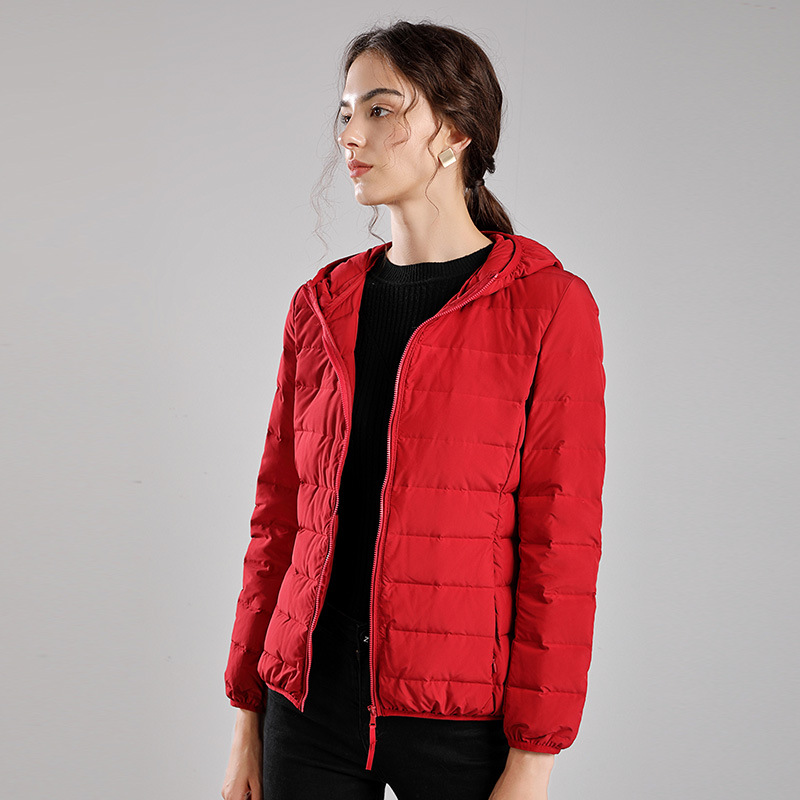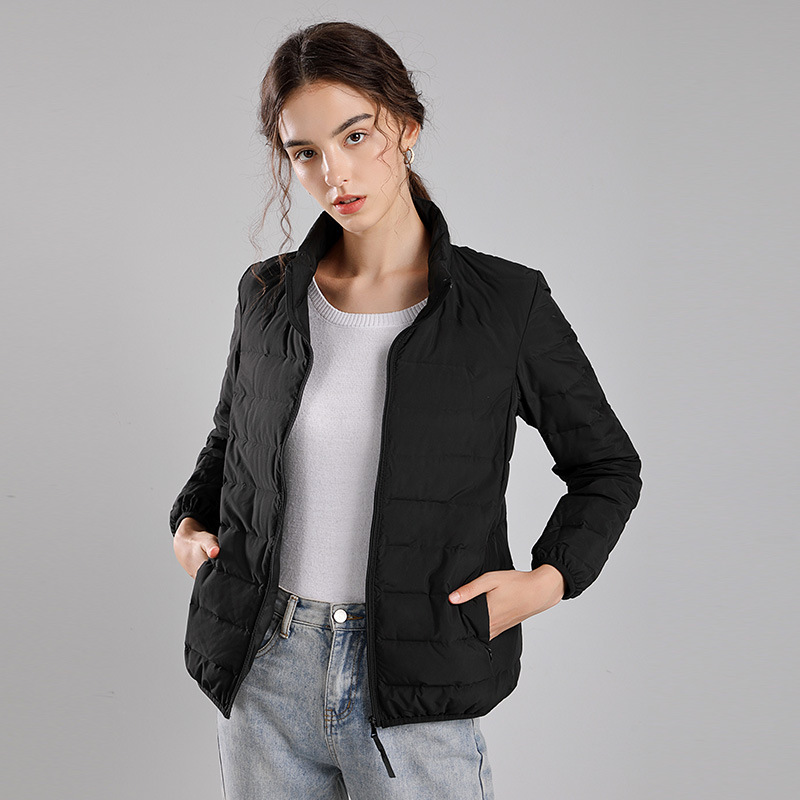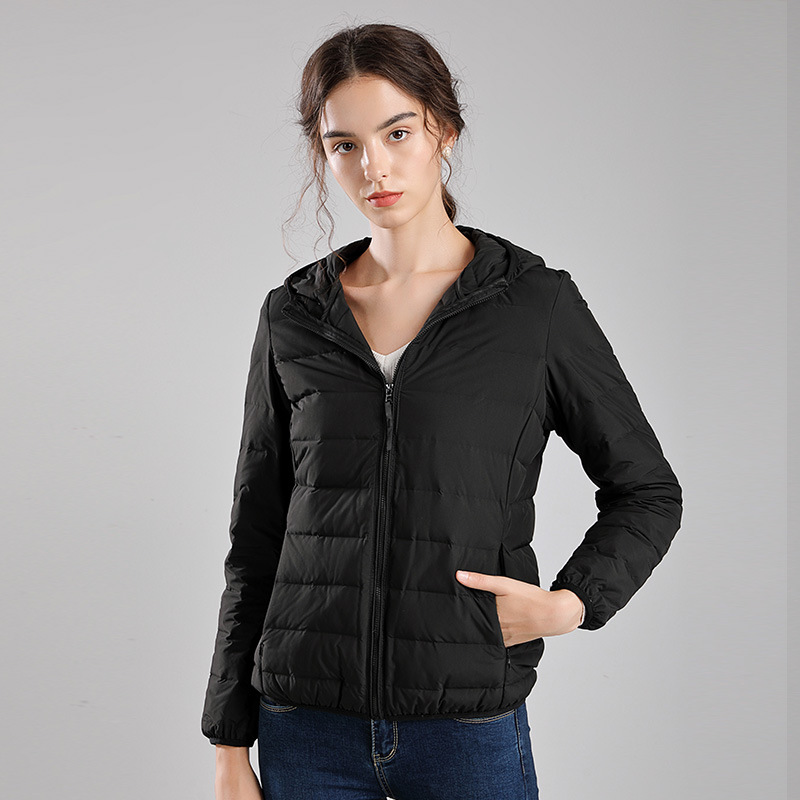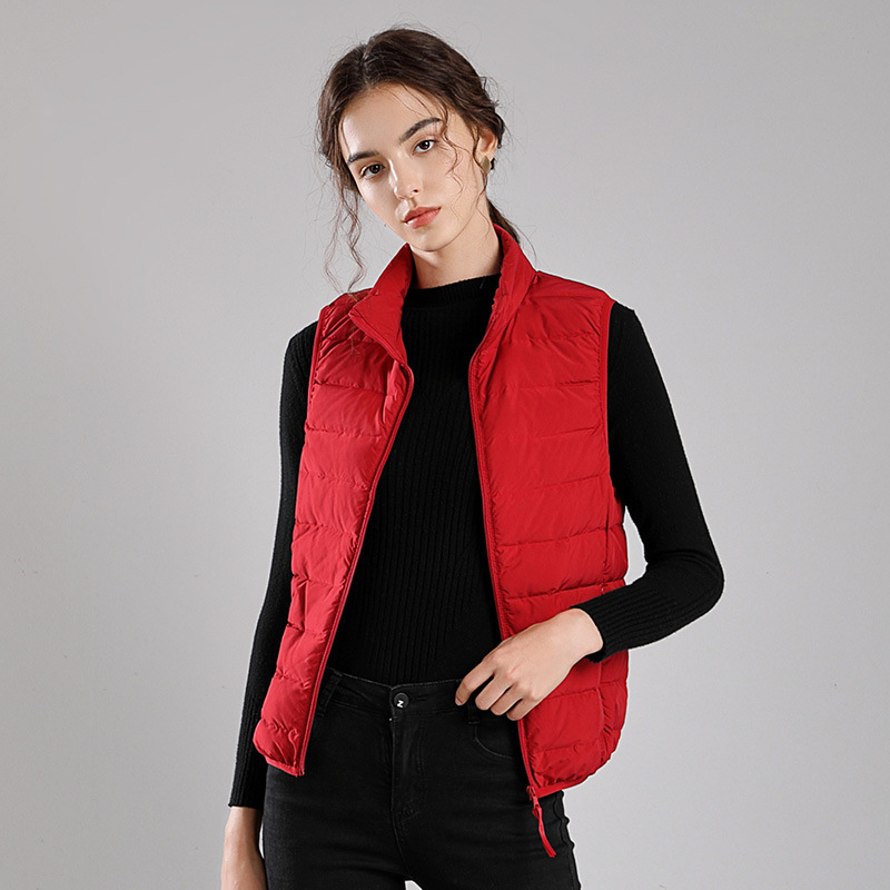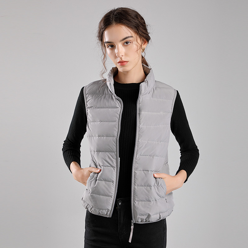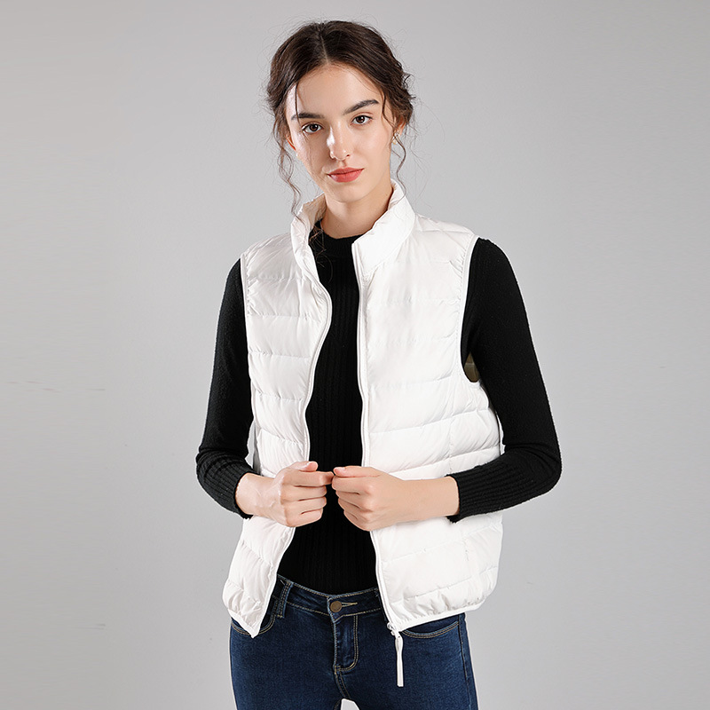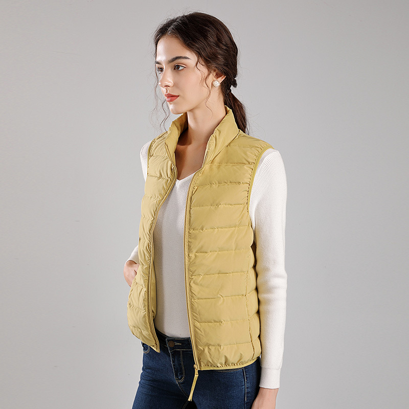 Winter new style seamless one-piece woven light down jacket women's hooded stand-up collar vest 90 white duck down warm jacket