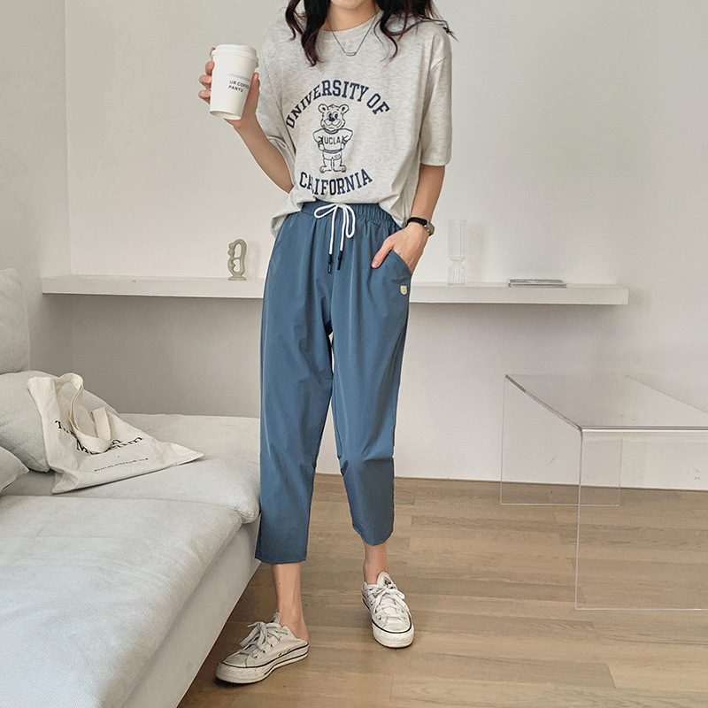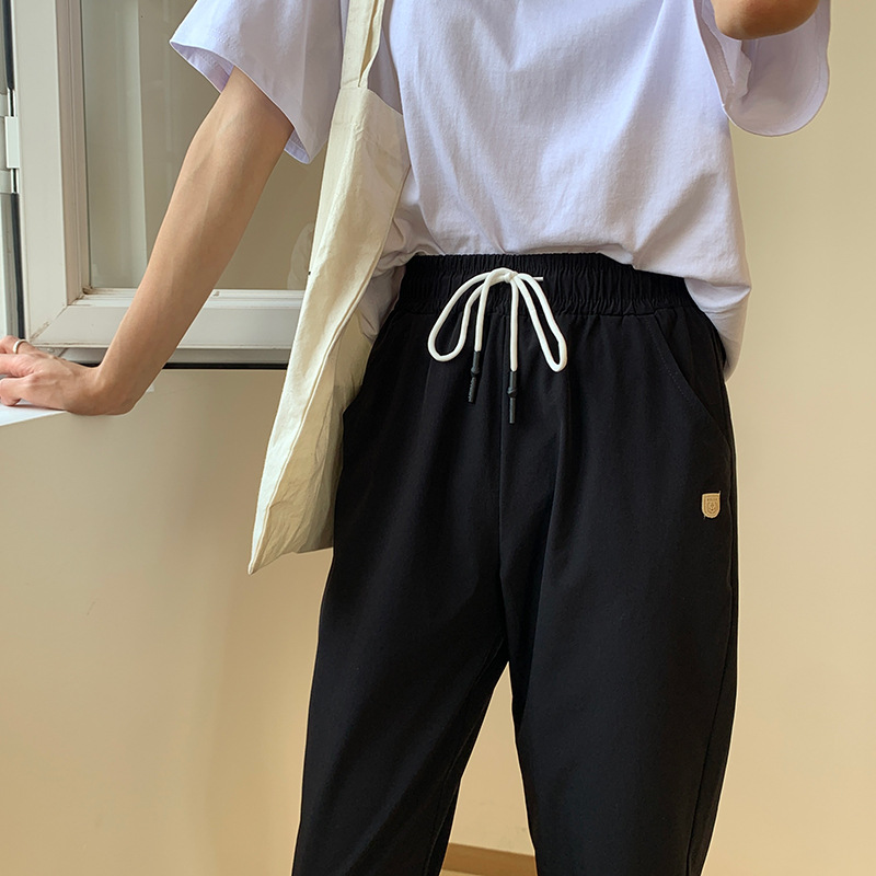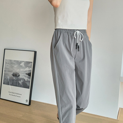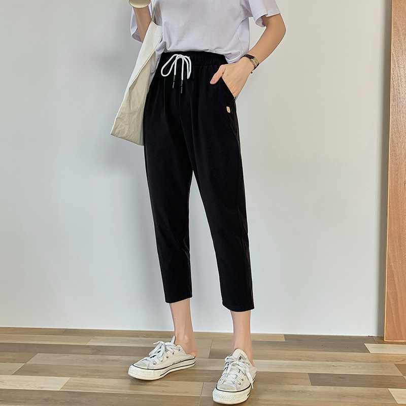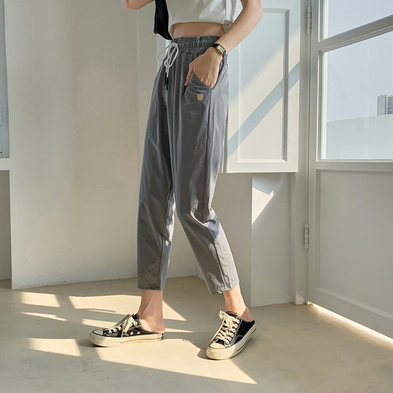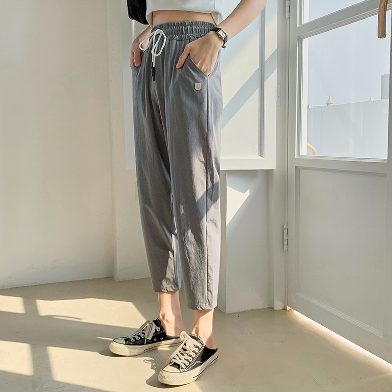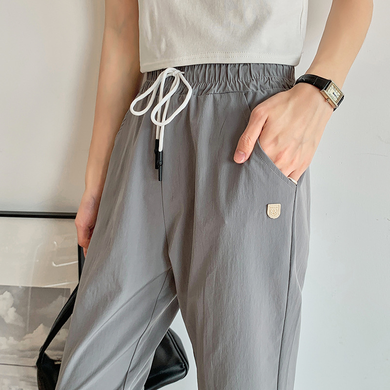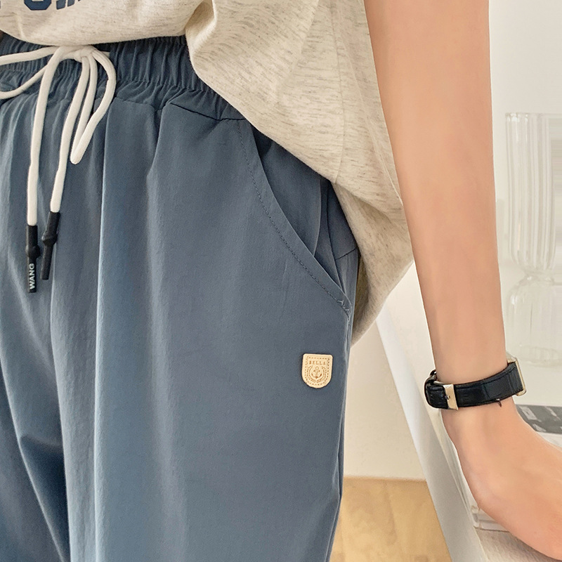 2024 summer new style quick-drying casual pants with pockets for women, breathable eight-quarter pants, simple drawstring sports carrot pants