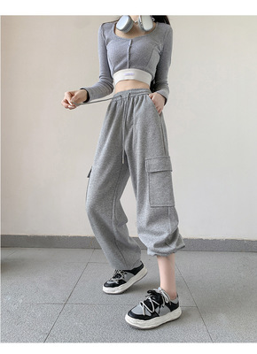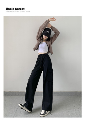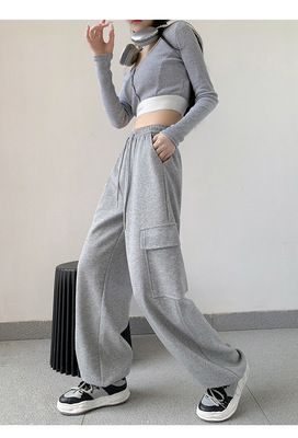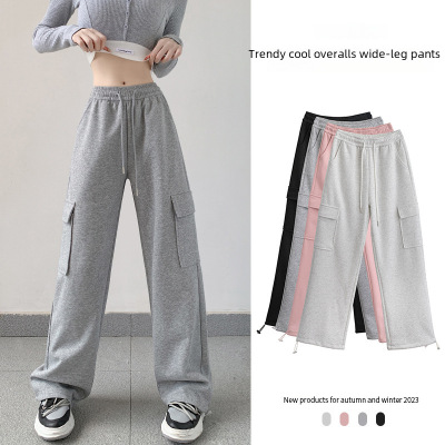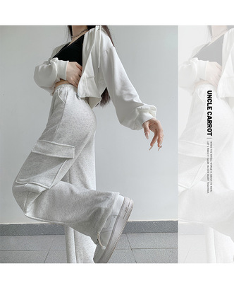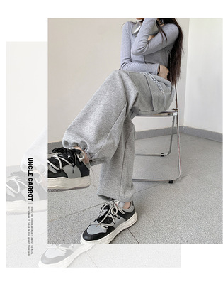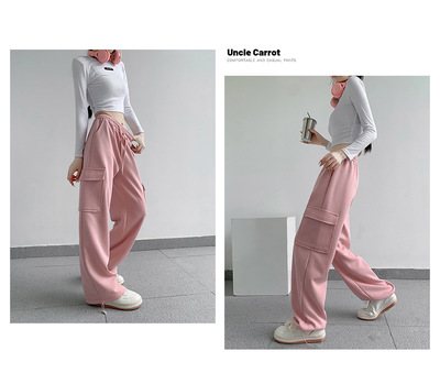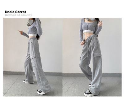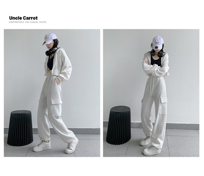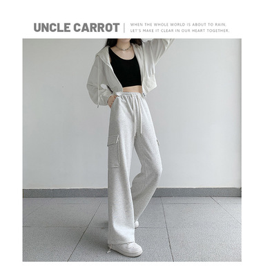 Uncle Carrot Gray Overalls Women's Autumn and Winter 2024 New Casual Sports Pants Loose Velvet Wide Leg Pants Women
