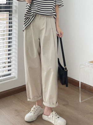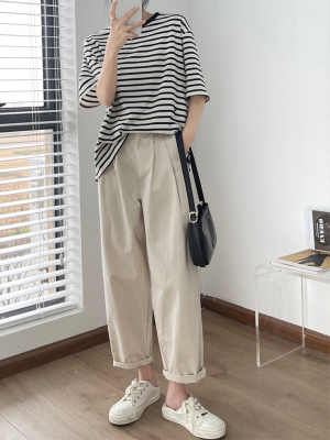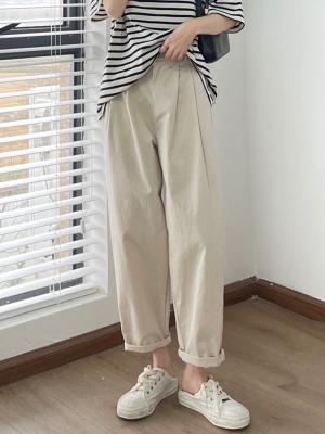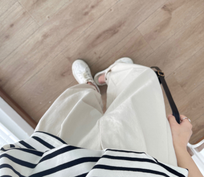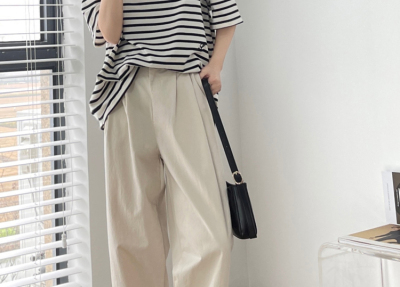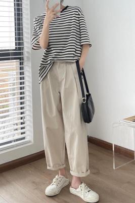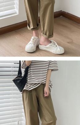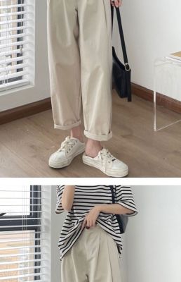 Off-white pants summer women's thin pure cotton high-waisted wide-leg pants slightly fat and slim mm plus size dad pants