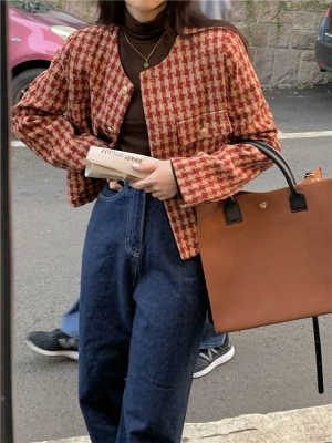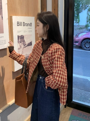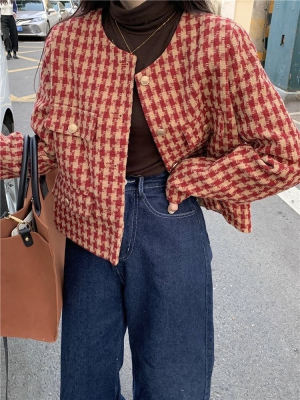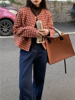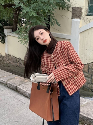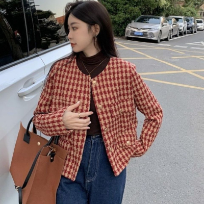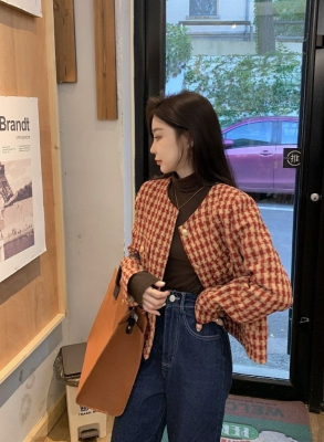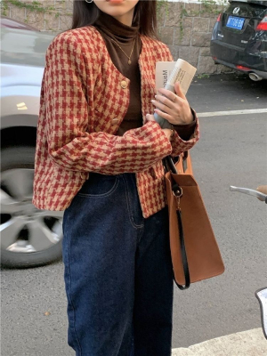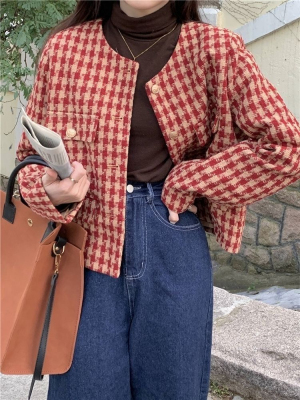 New autumn and winter British retro suit short long-sleeved tops for women houndstooth small fragrant style short coats