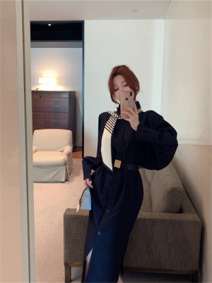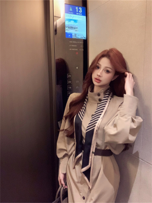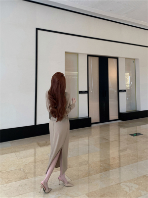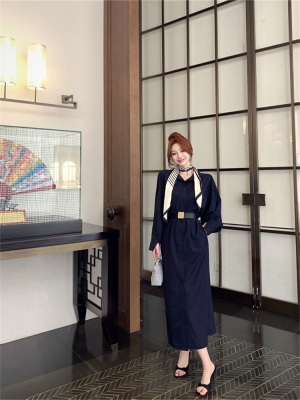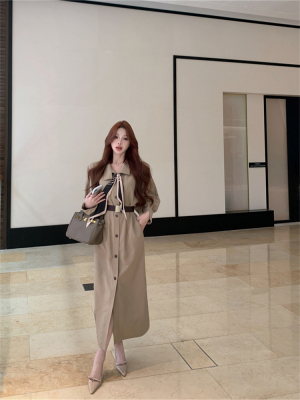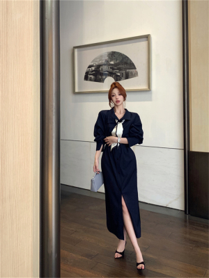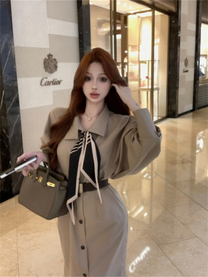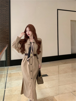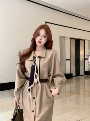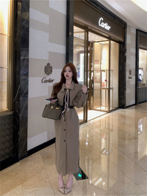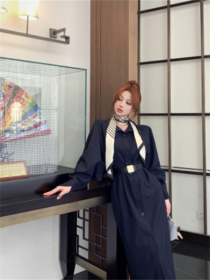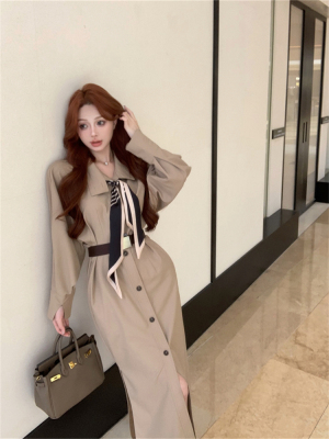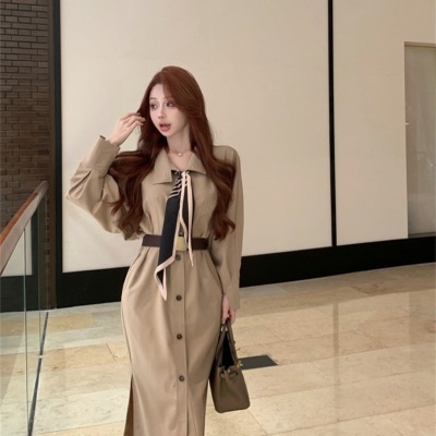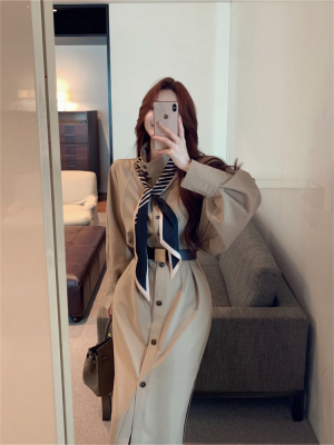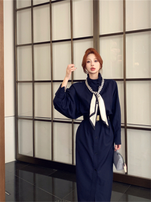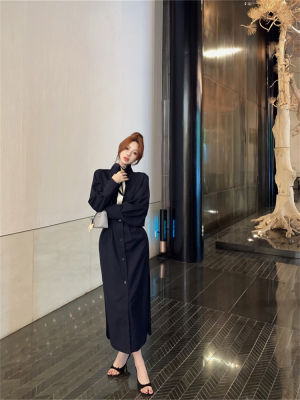 women's French-style loose long V-neck coat dress with a sense of elegance