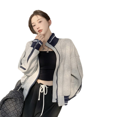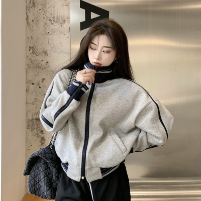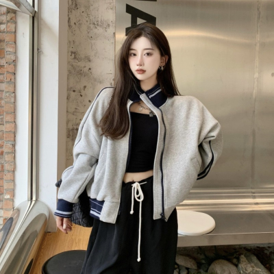 Languid V-neck Baseball Jacket for Women - Spring and Autumn Season, Loose and Casual, Splicing Design, Stylish Top for Petite Figures, Inspired by Instagram