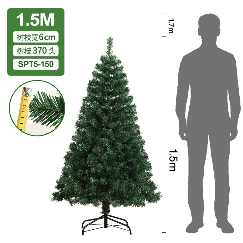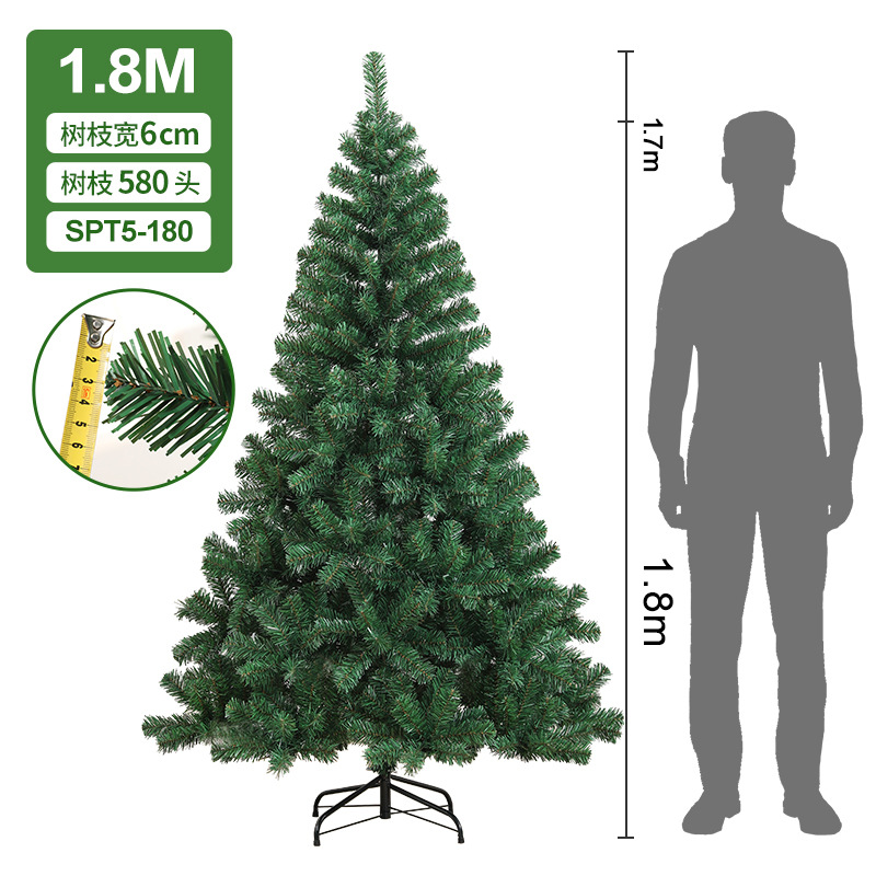 PVC Christmas tree large encrypted green simulation tree 1.5m/1.8m home hotel floor-standing ornaments in stock