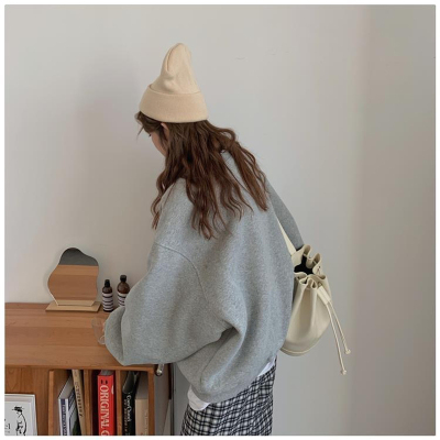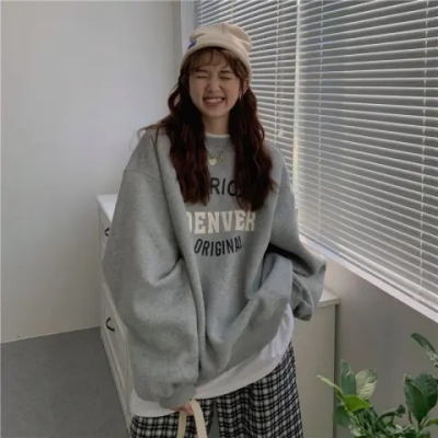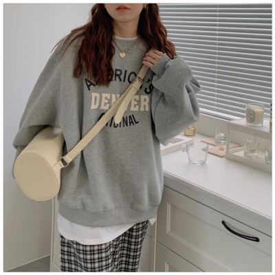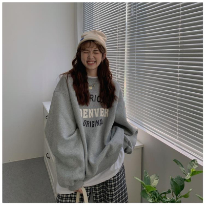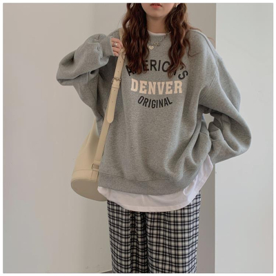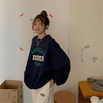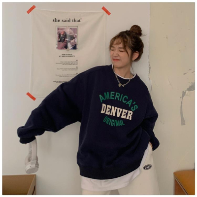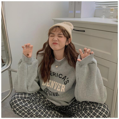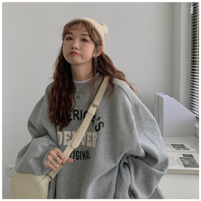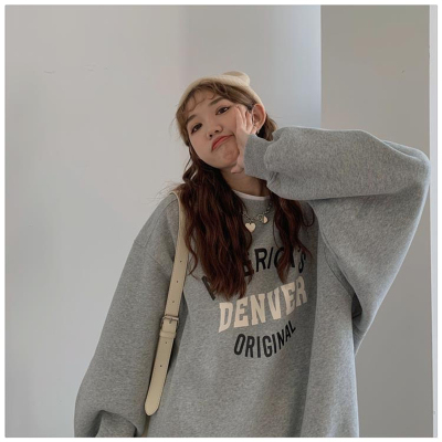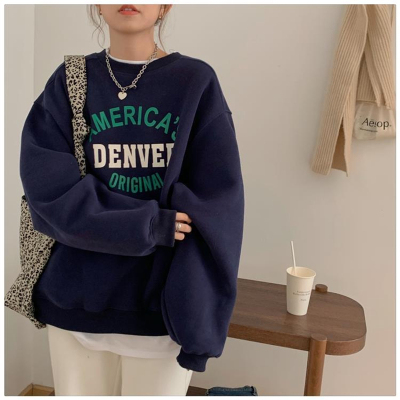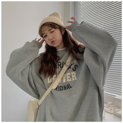 Hollywood Chic Hong Kong Style Ultra Hot Capless Sweatshirt for Women Autumn/Winter Trendy Ins Korean Version Loose Fleece Thick Streetwear 9024