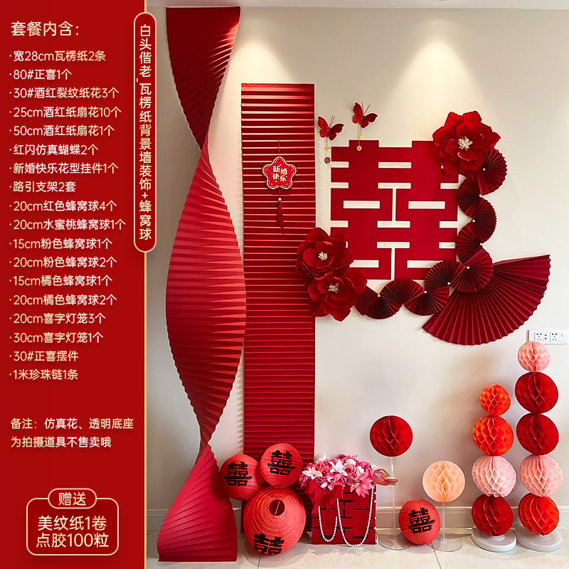Specifications: grow old together_corrugated background wall decoration + honeycomb ball