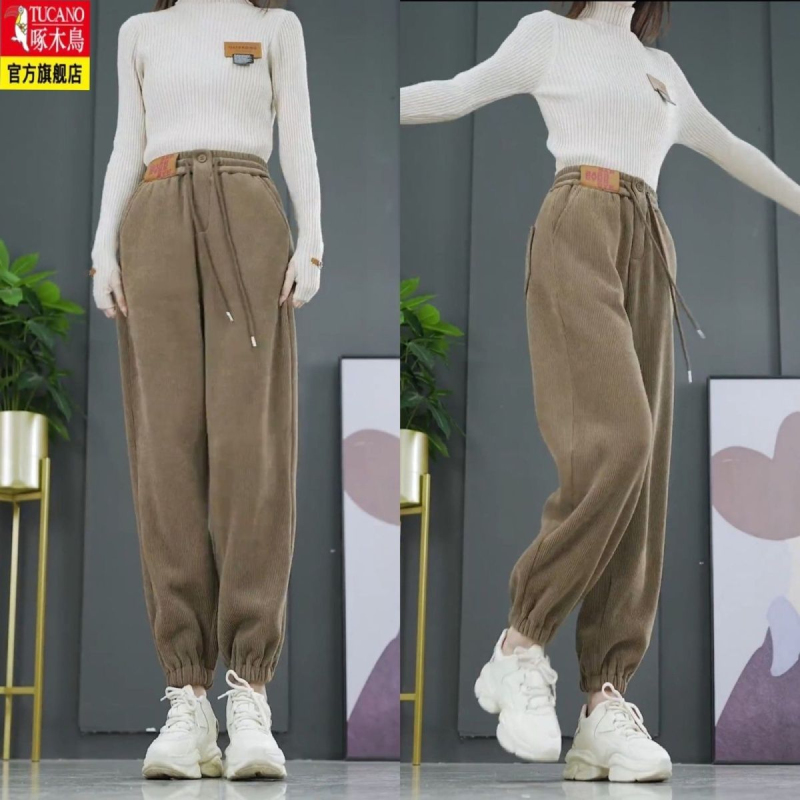 High-quality corduroy, arctic velvet, sherpa, high-waisted trousers, extra thick plus velvet, thickened casual harem pants